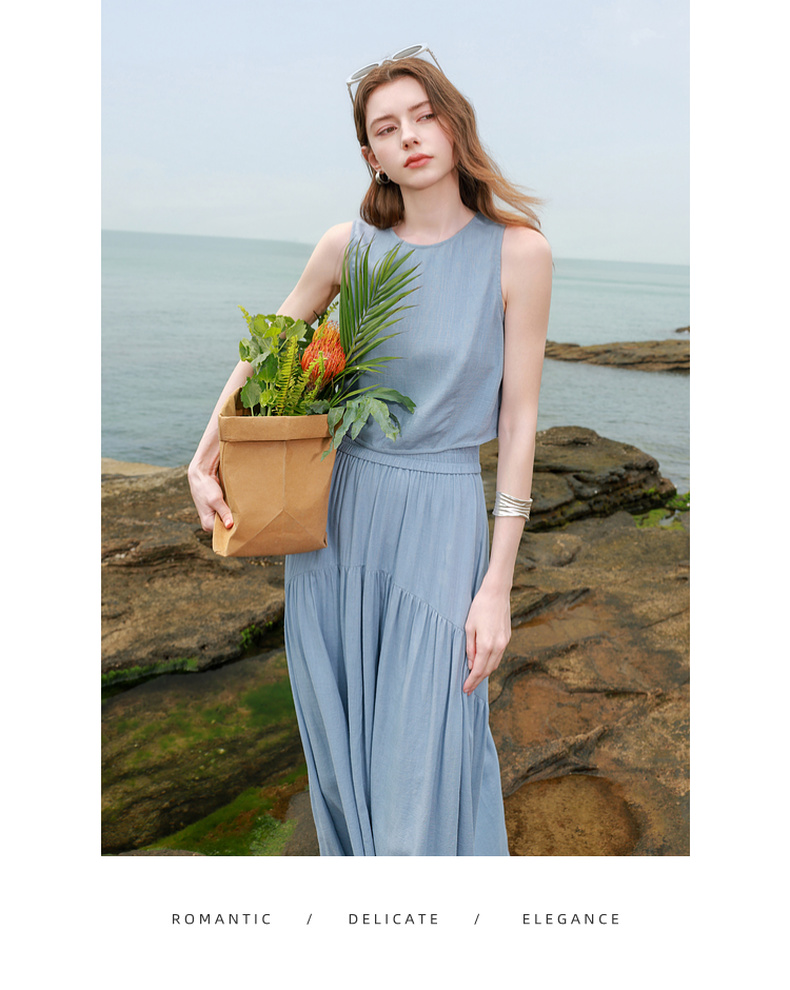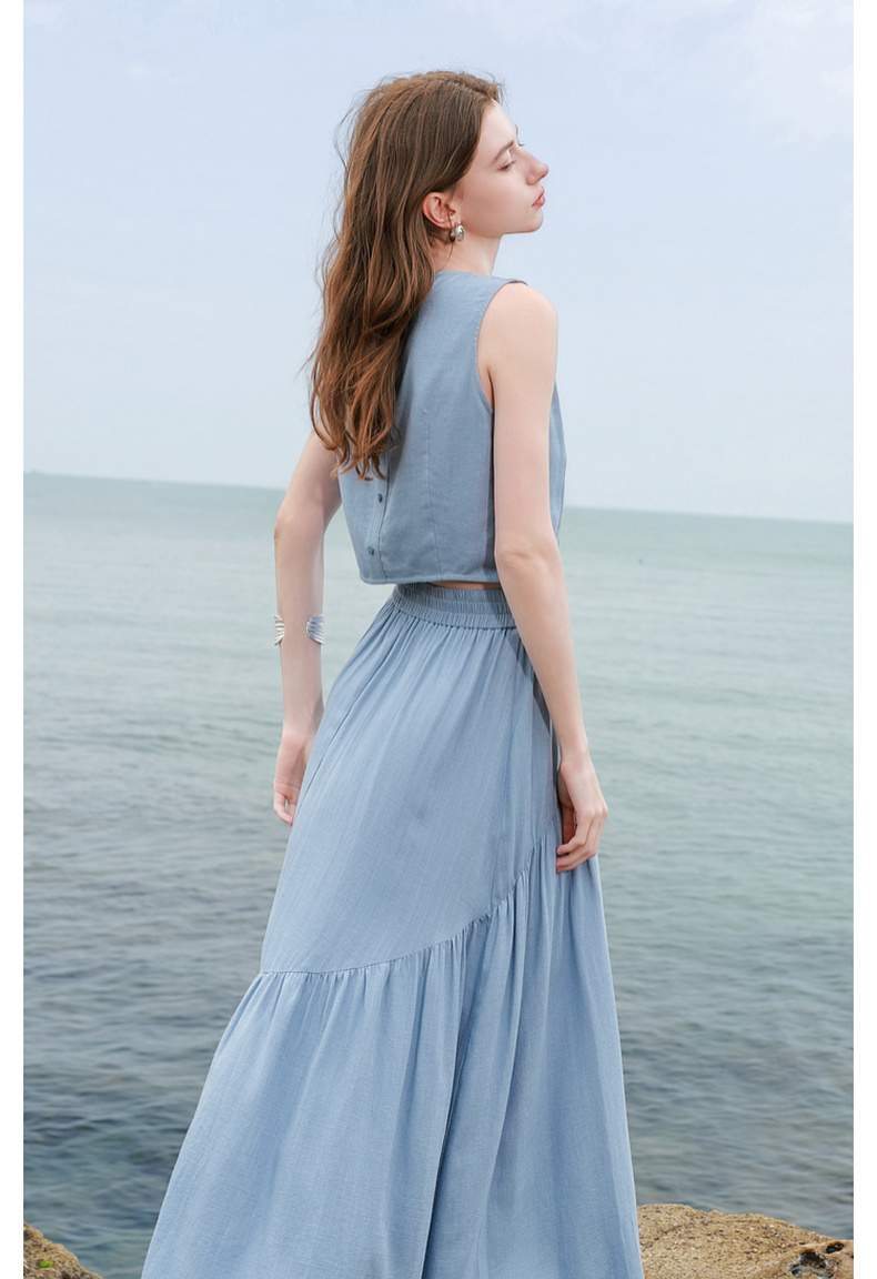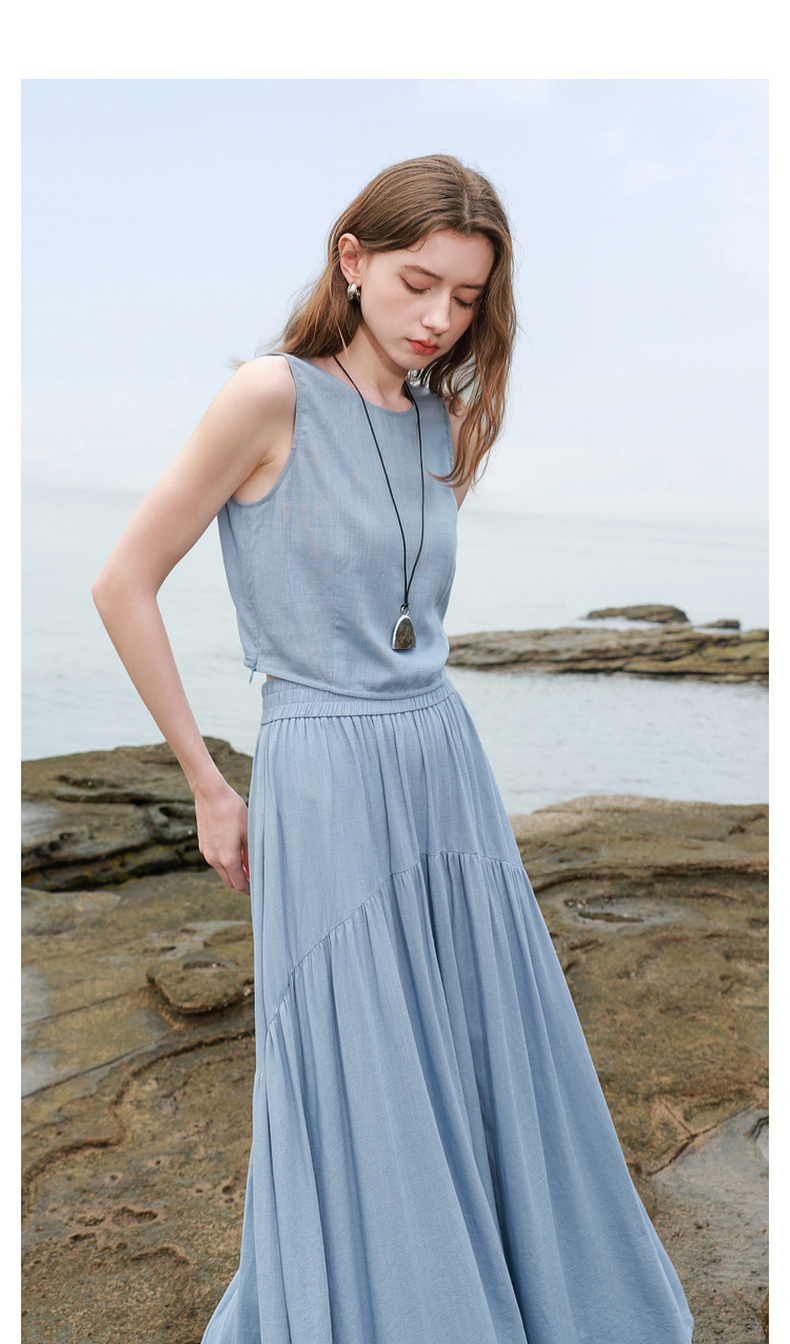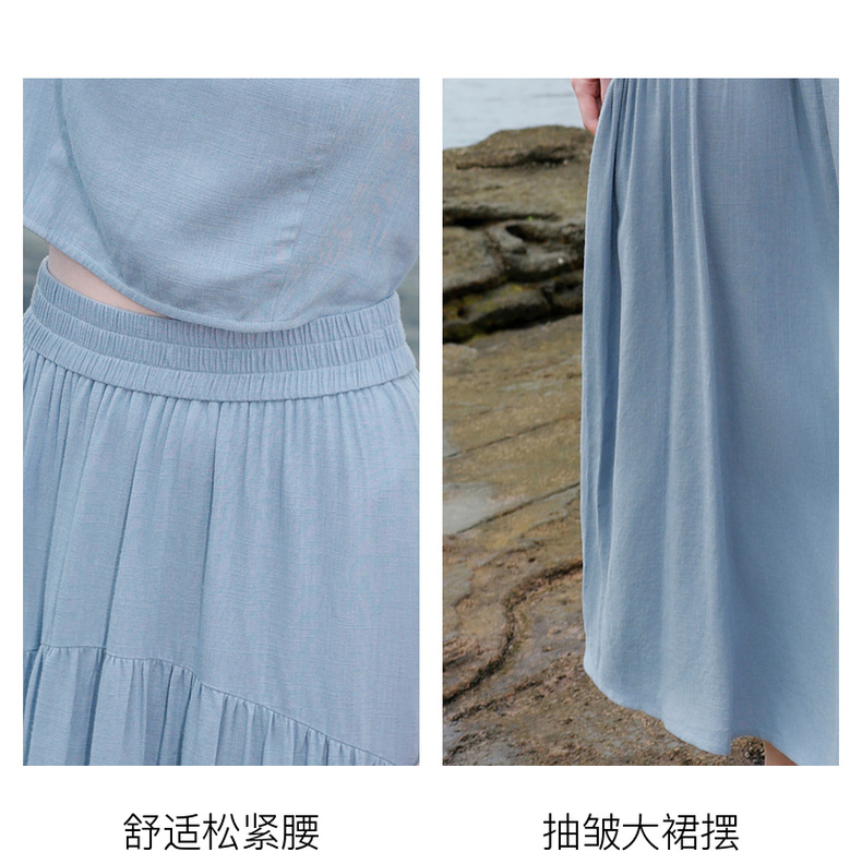 三彩仙女裙【亚麻】2025夏季新款麻感套装圆领衬衣套头衫半身裙长裙两件套M