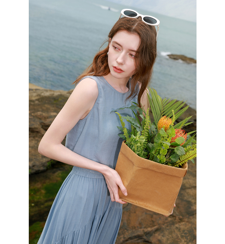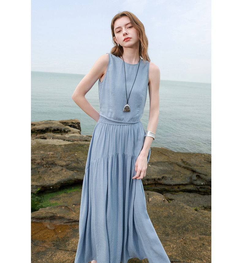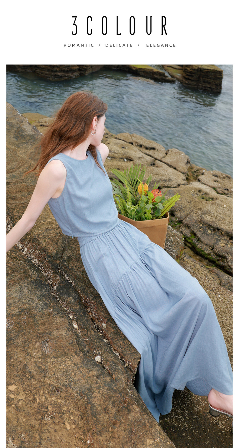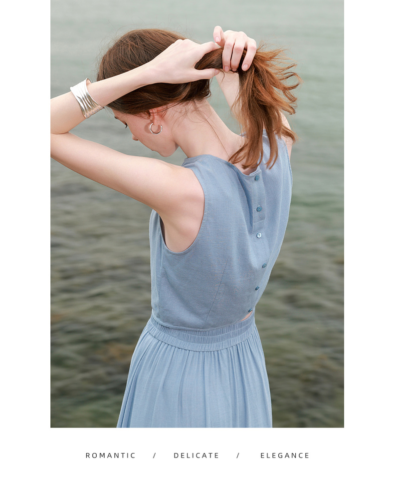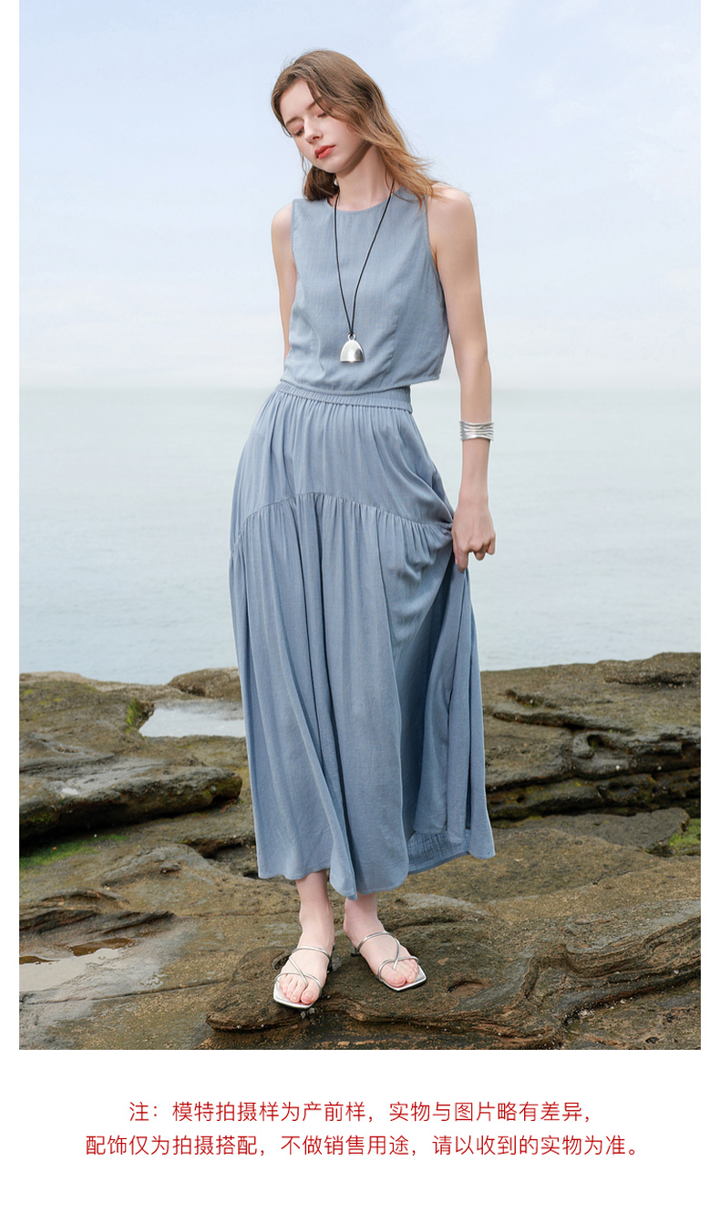 三彩仙女裙【亚麻】2025夏季新款麻感套装圆领衬衣套头衫半身裙长裙两件套M