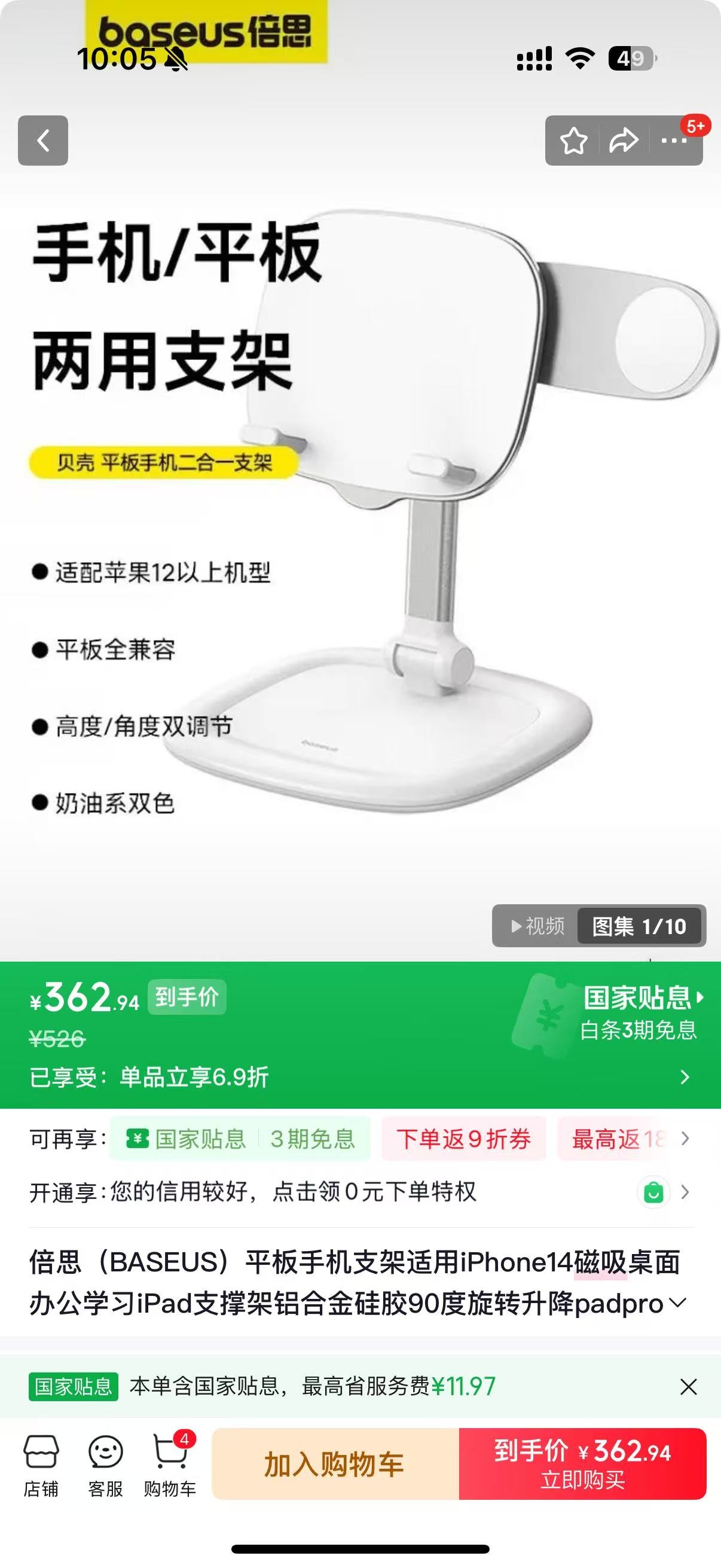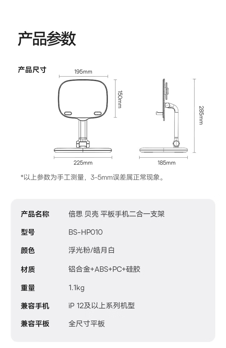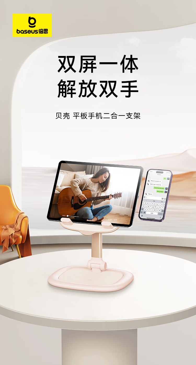 Baseus/倍思 贝壳平板手机二合一两用支架 BS-HP010 双屏同用 解放双手
