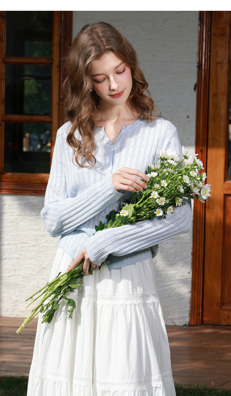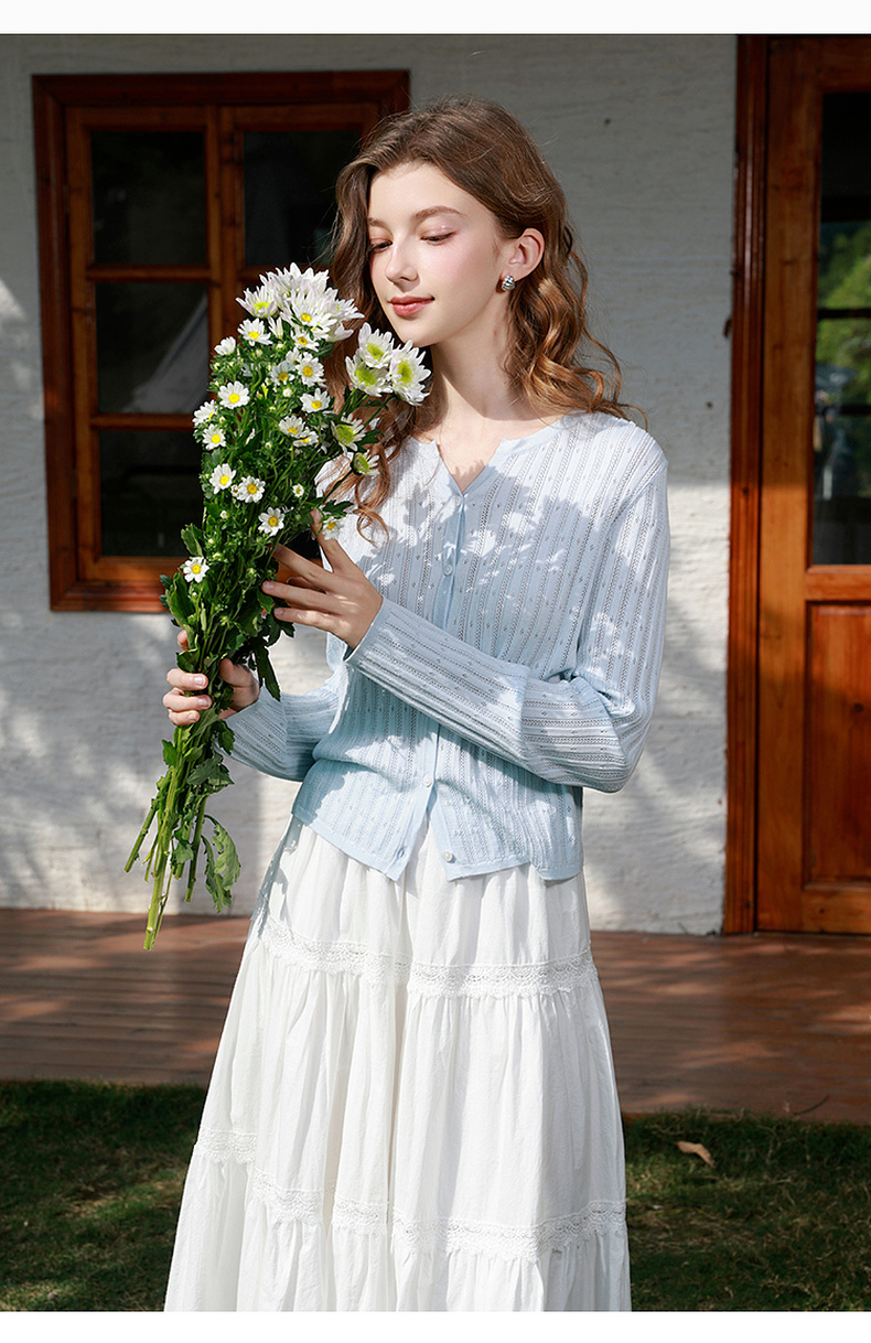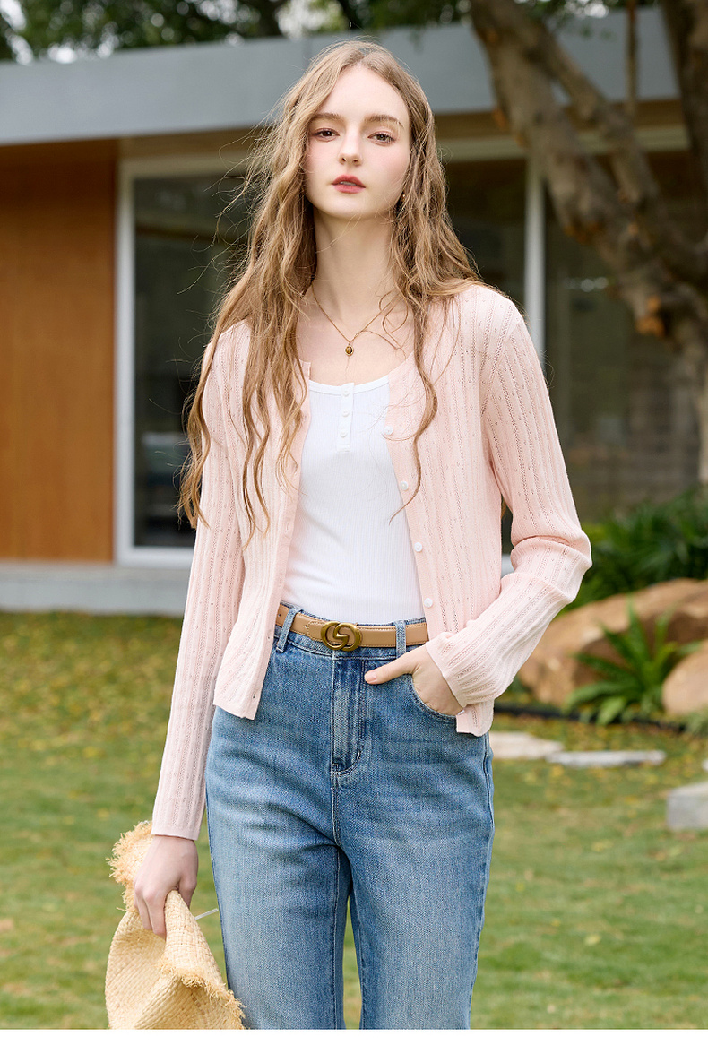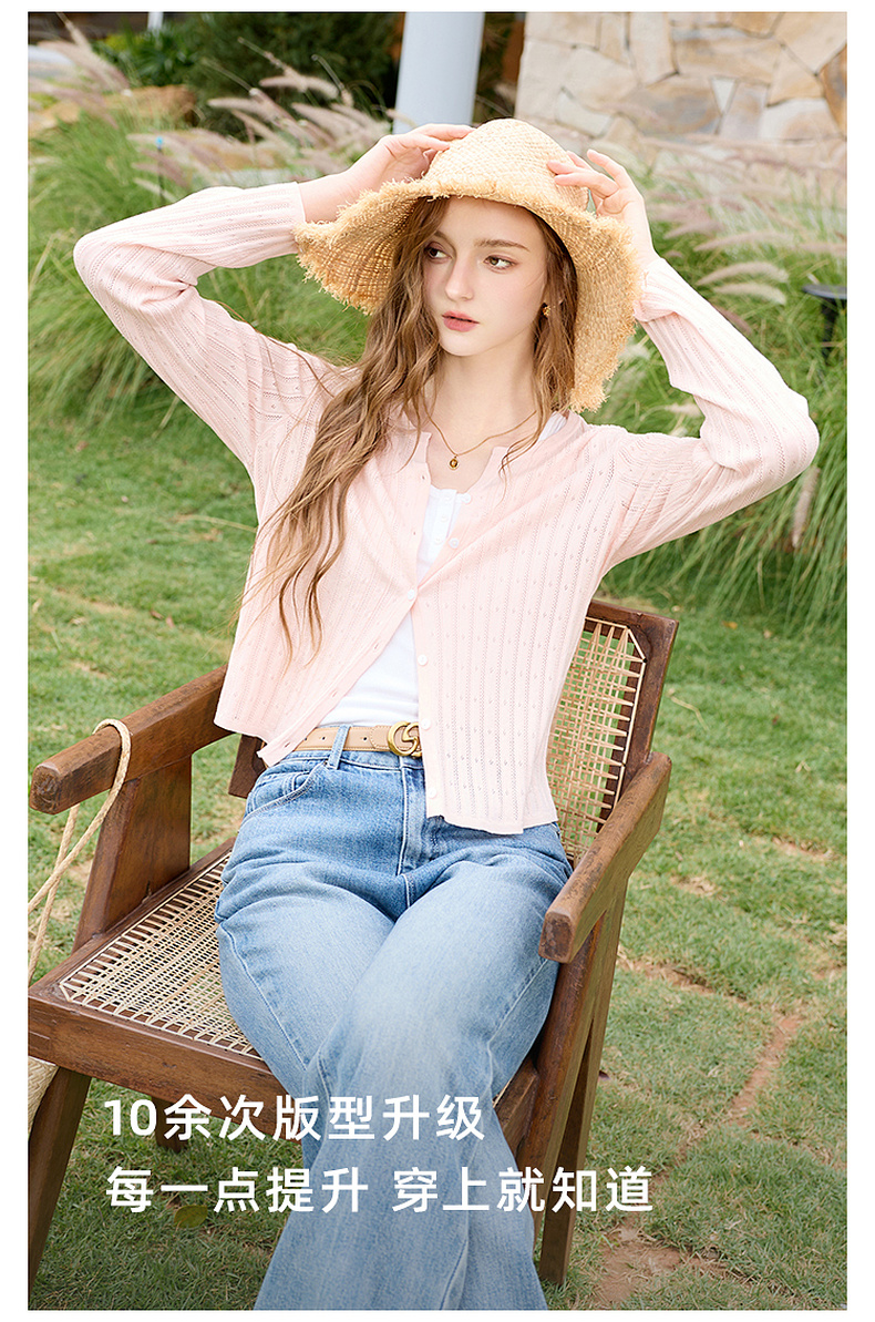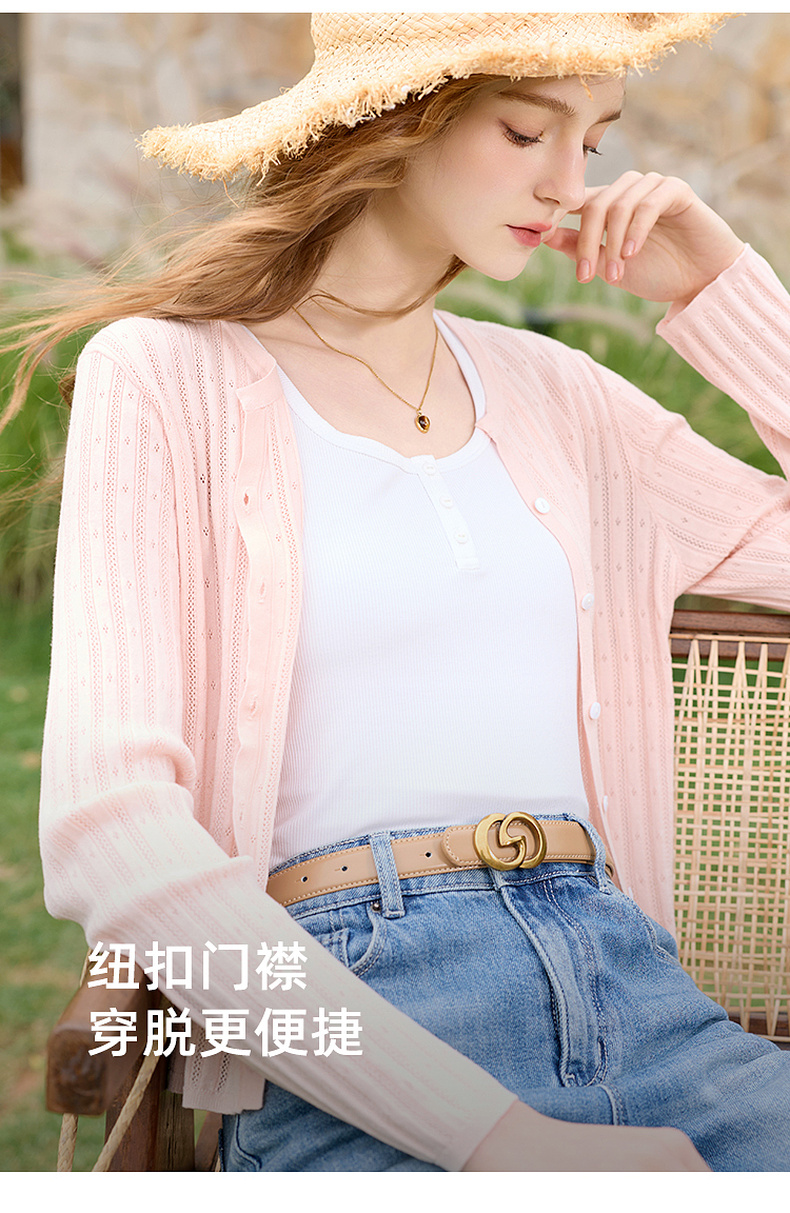 【莱赛尔醋酸长绒棉】三彩2026春季新款长袖针织衫外套轻薄开衫M