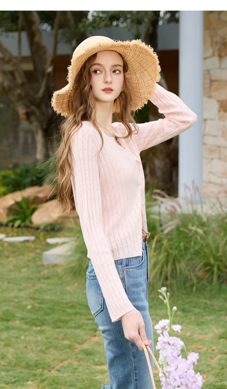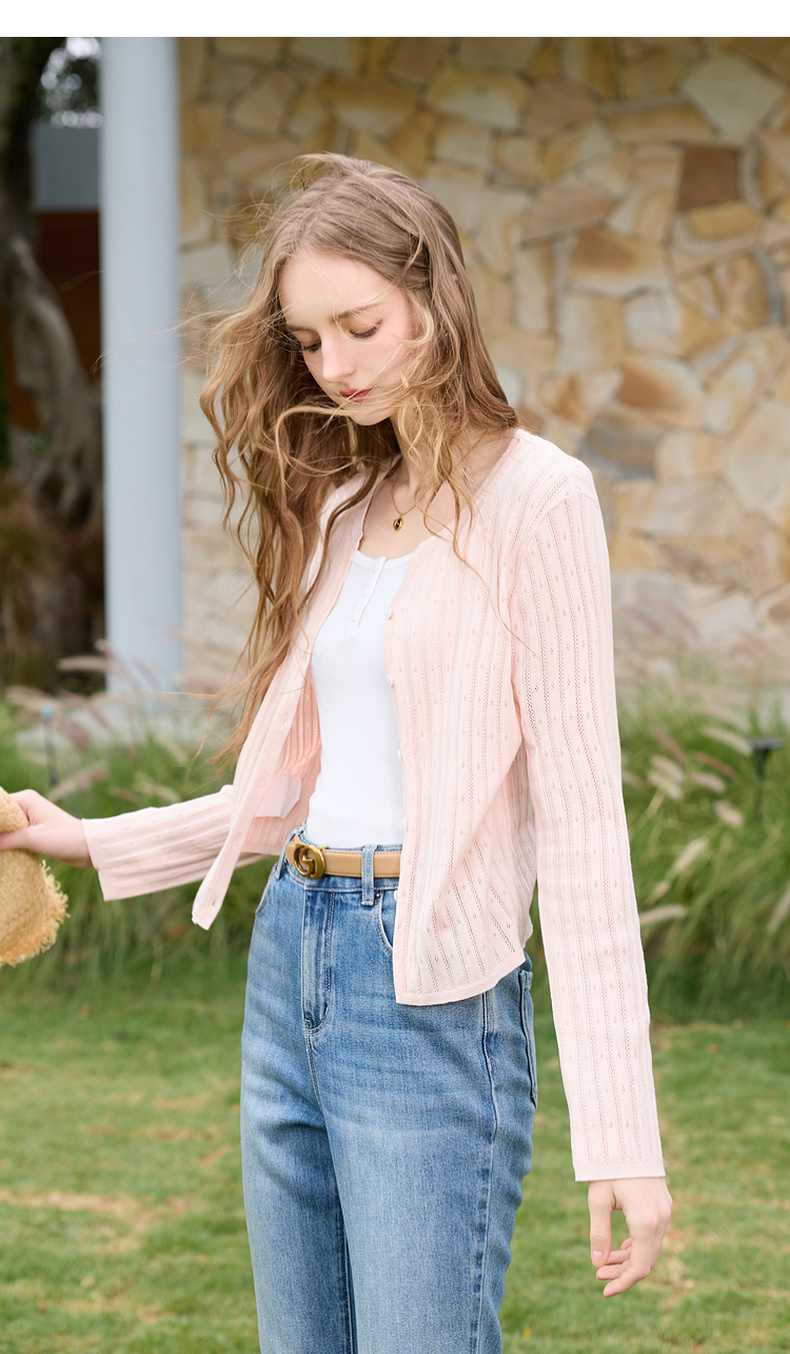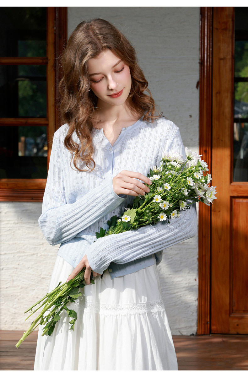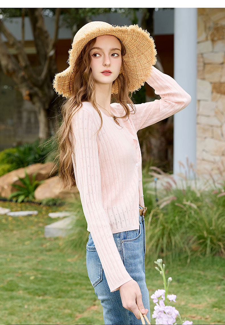 【莱赛尔醋酸长绒棉】三彩2026春季新款长袖针织衫外套轻薄开衫M