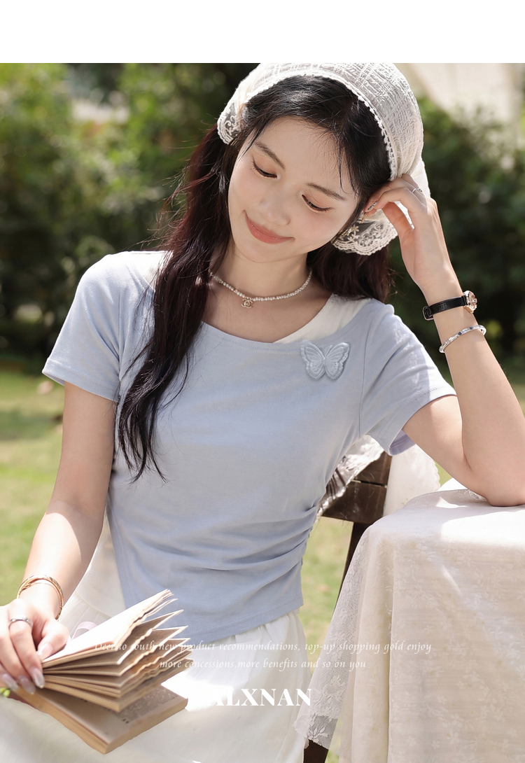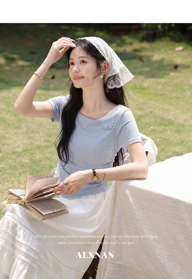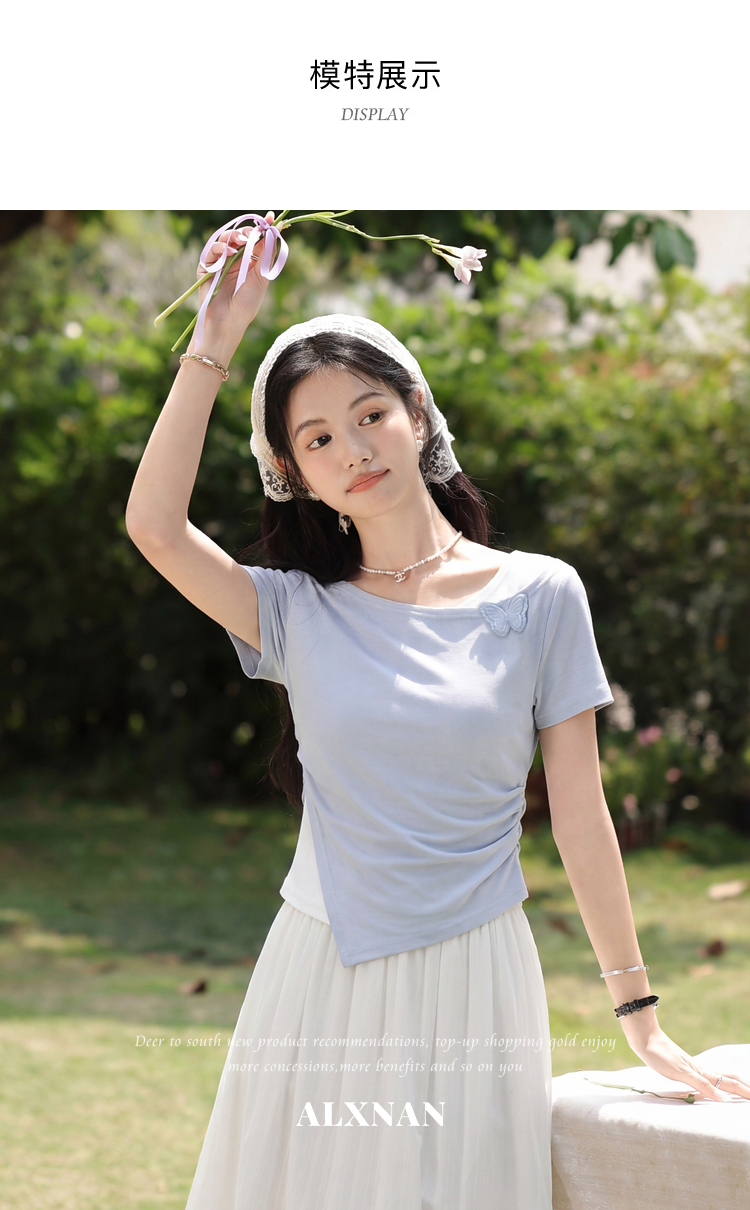 鹿向南【0402/20:00新品前1小时7折限量100件】蓝色T恤 商品图3