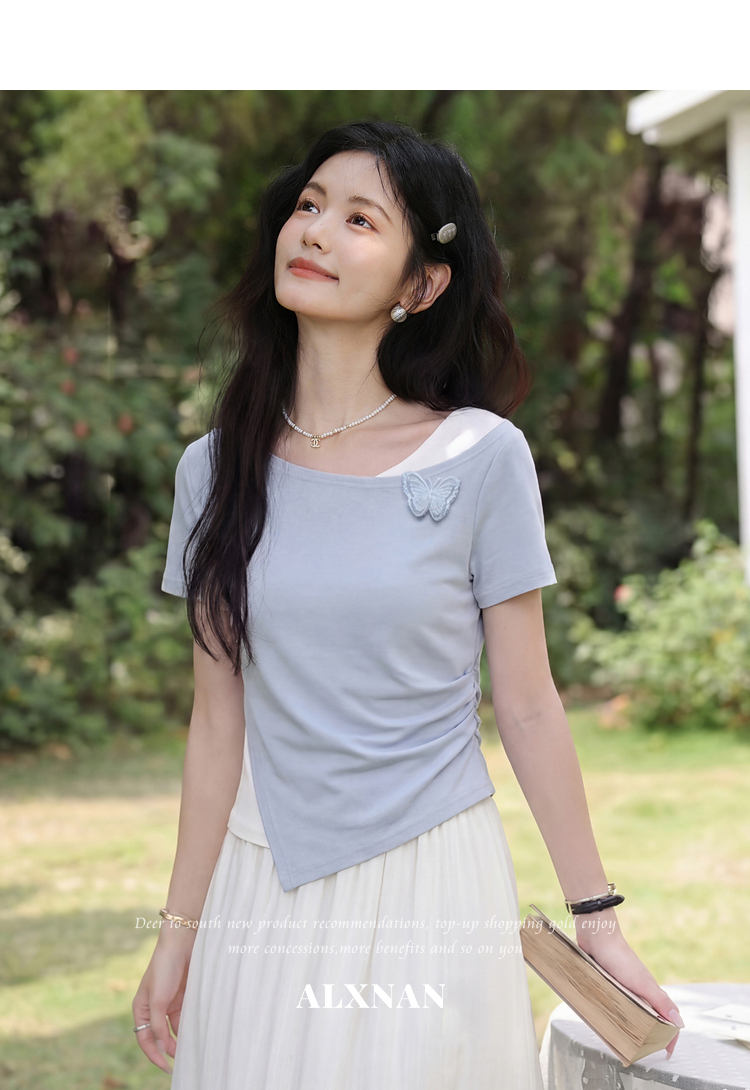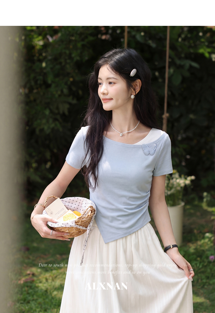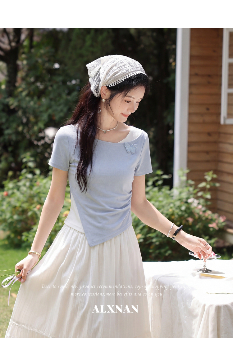 鹿向南【0402/20:00新品前1小时7折限量100件】蓝色T恤 商品图1