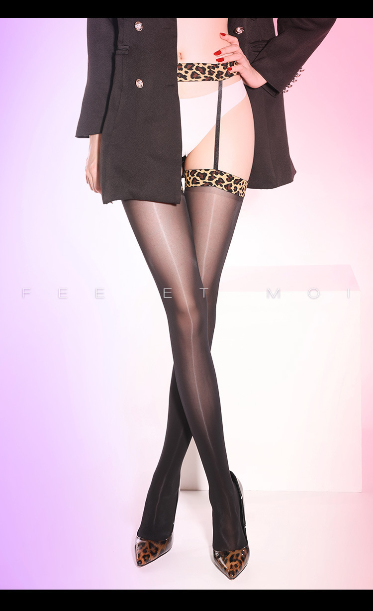 【霏慕】豹纹饰边极光马油吊带一体丝袜8330情趣内衣性感透肤