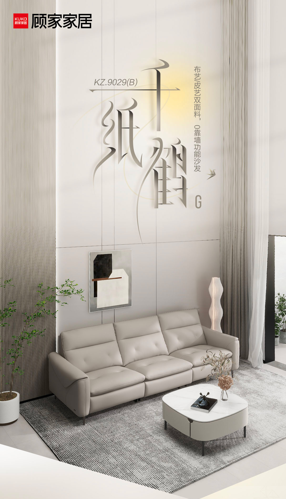 顾家家居整装 现代舒适 皮艺/布艺功能沙发 KZ.9029(B)千纸鹤G