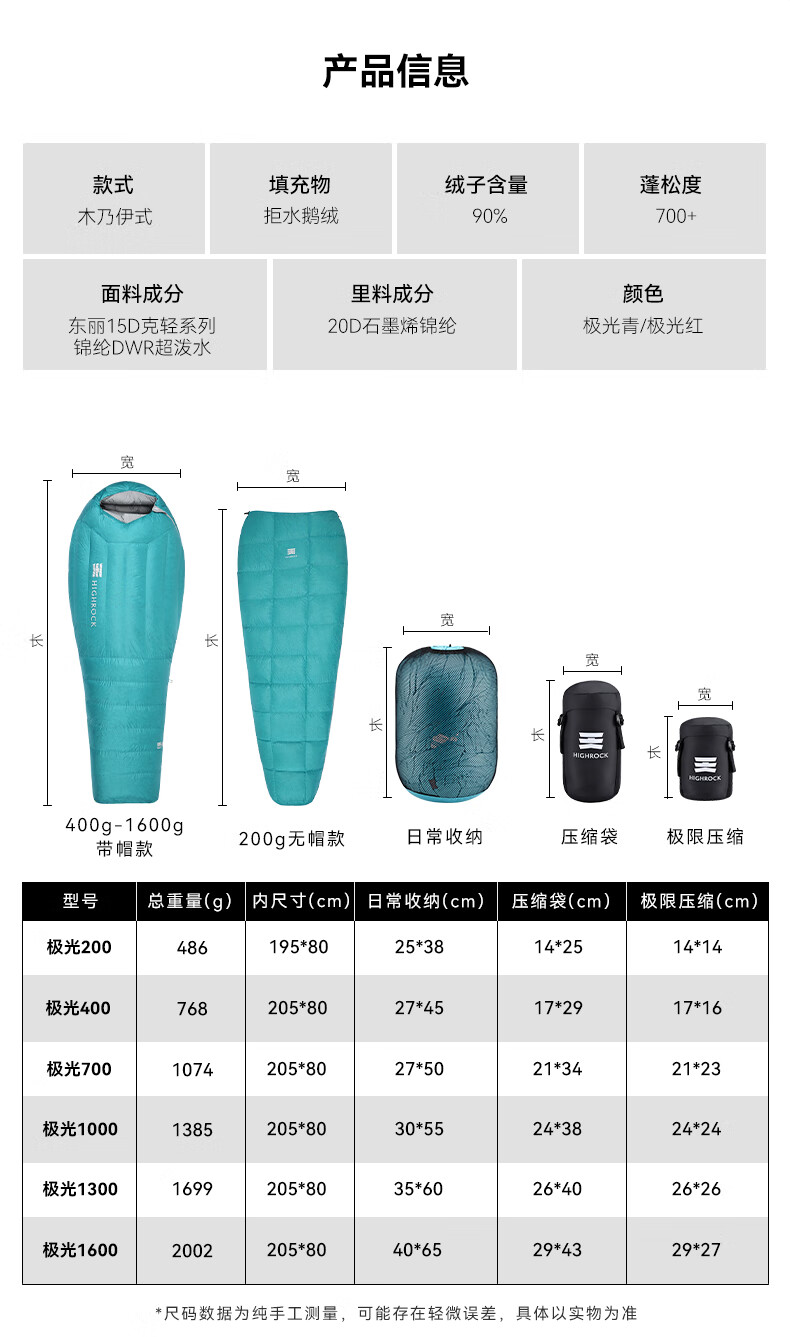 天石(HIGHROCK)24新款极光鹅绒木乃伊式羽绒睡袋