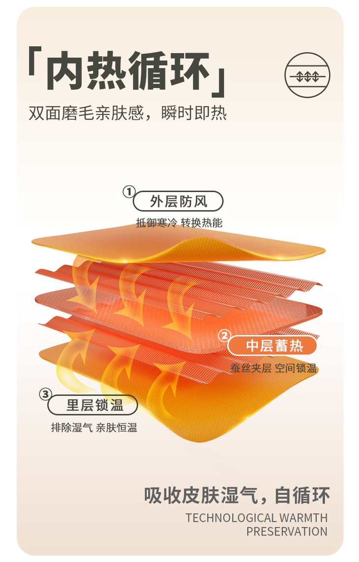 不同于普通秋裤的单层保暖,它用了蚕丝内胆,够保暖也够轻盈。