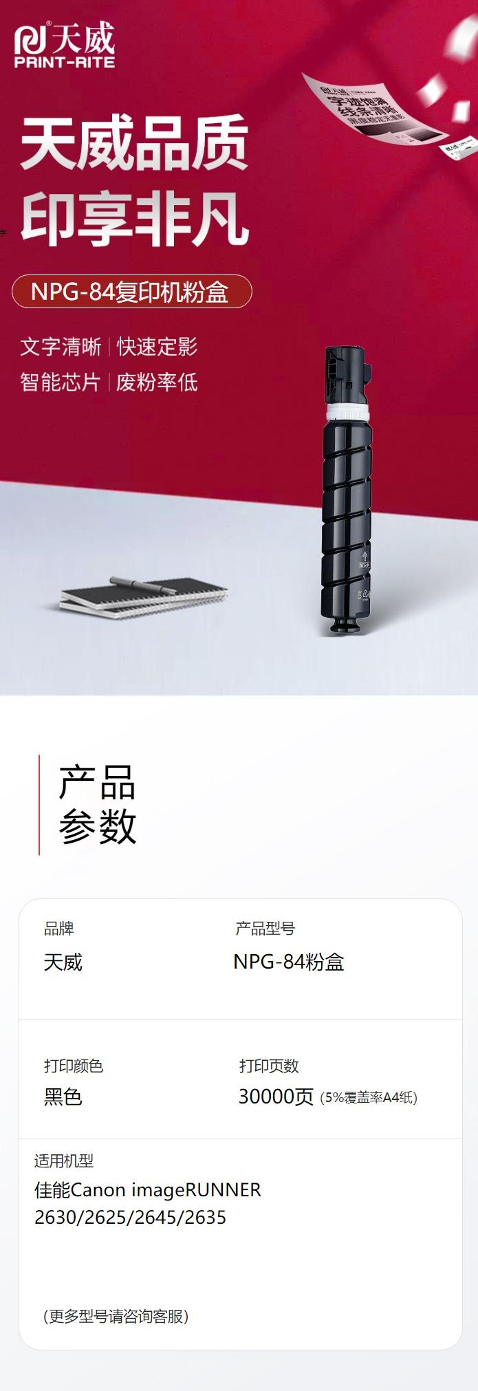 天威 NPG84粉盒 适用佳能Canon ImageRUNNER 2625 2630 2635 2645打印机复合机墨盒高容 碳粉 墨粉 墨粉盒NPG-84