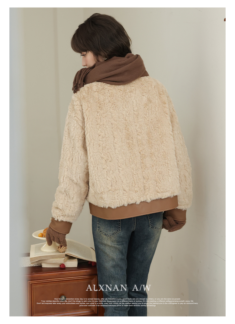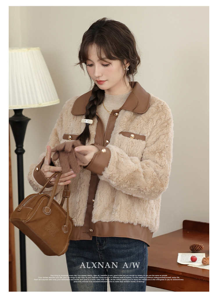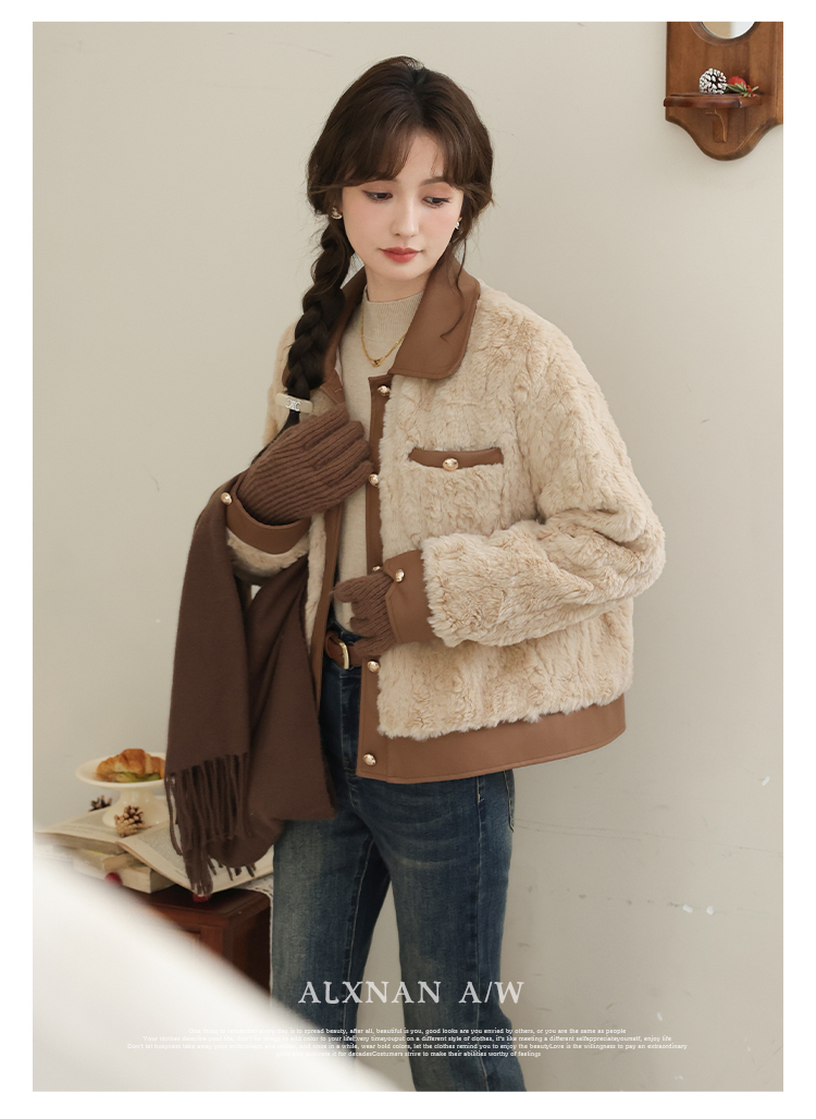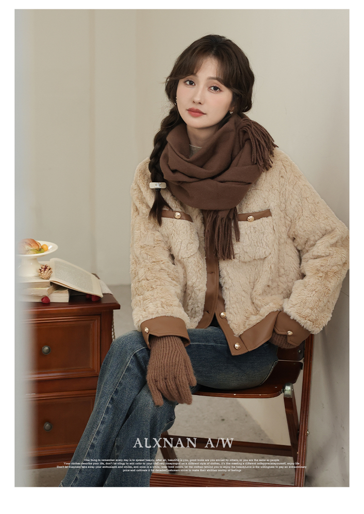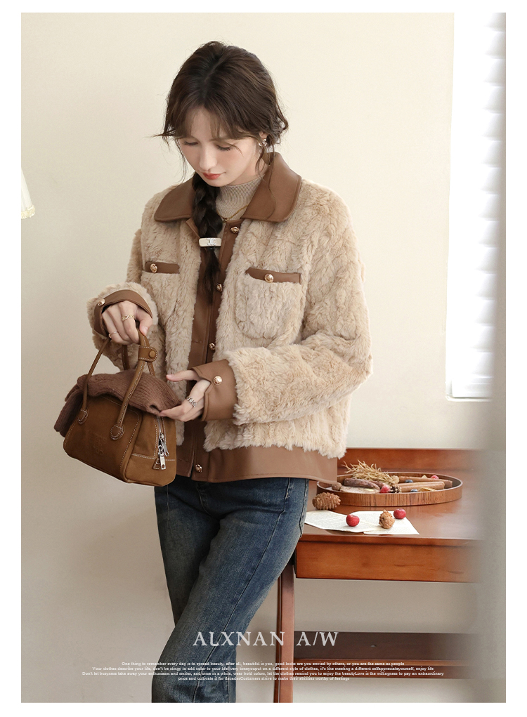 鹿向南《榛果拿铁》羊羔毛外套女秋冬款休闲美拉德短款保暖上衣