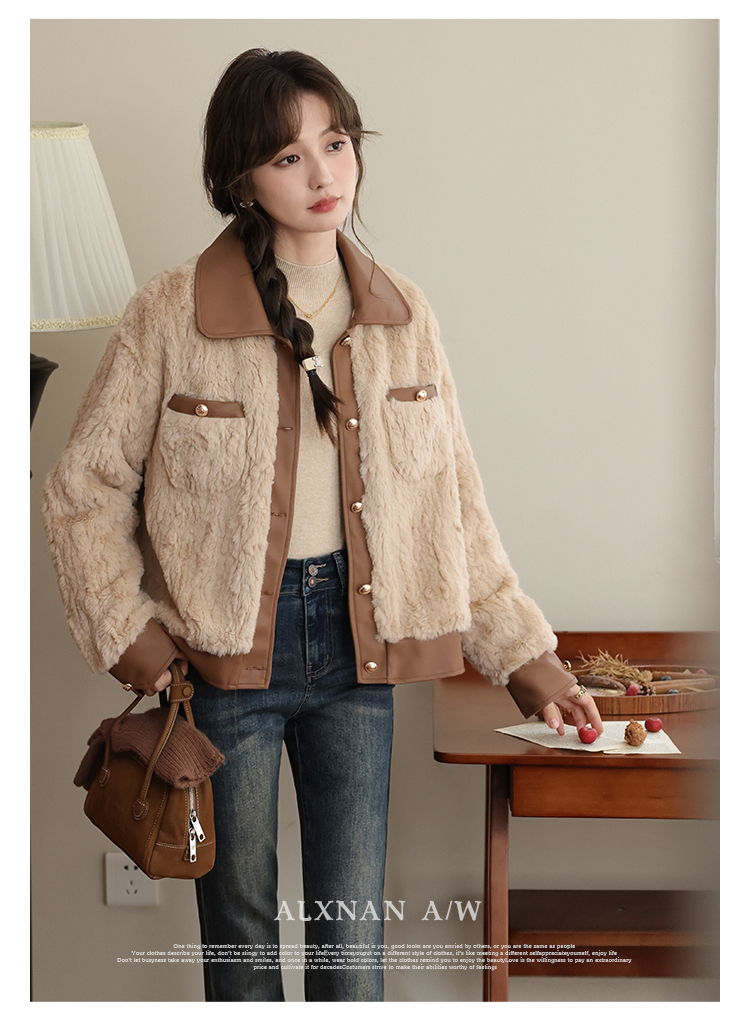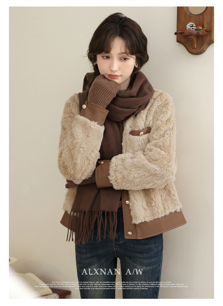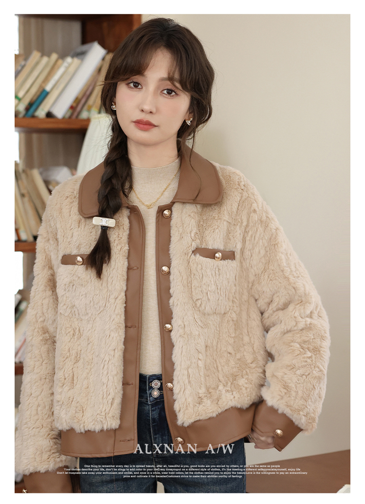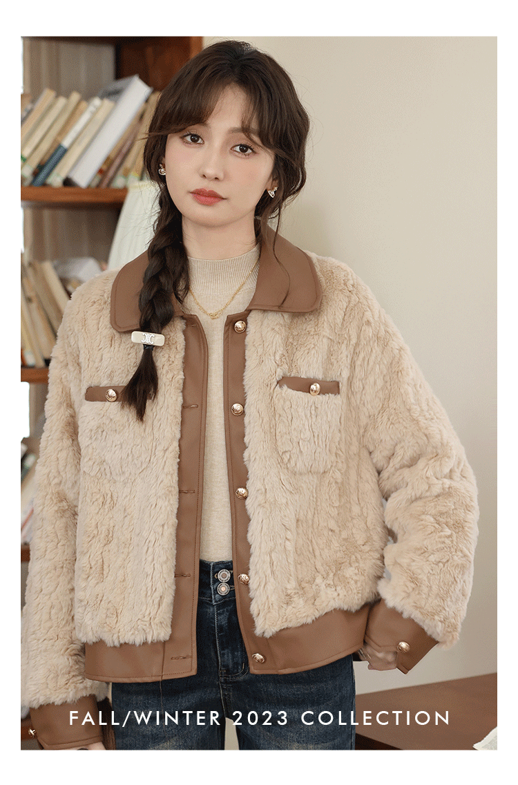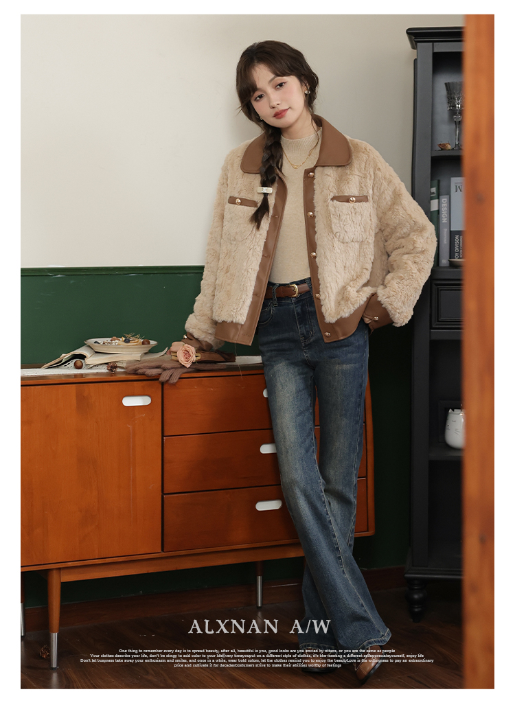 鹿向南《榛果拿铁》羊羔毛外套女秋冬款休闲美拉德短款保暖上衣