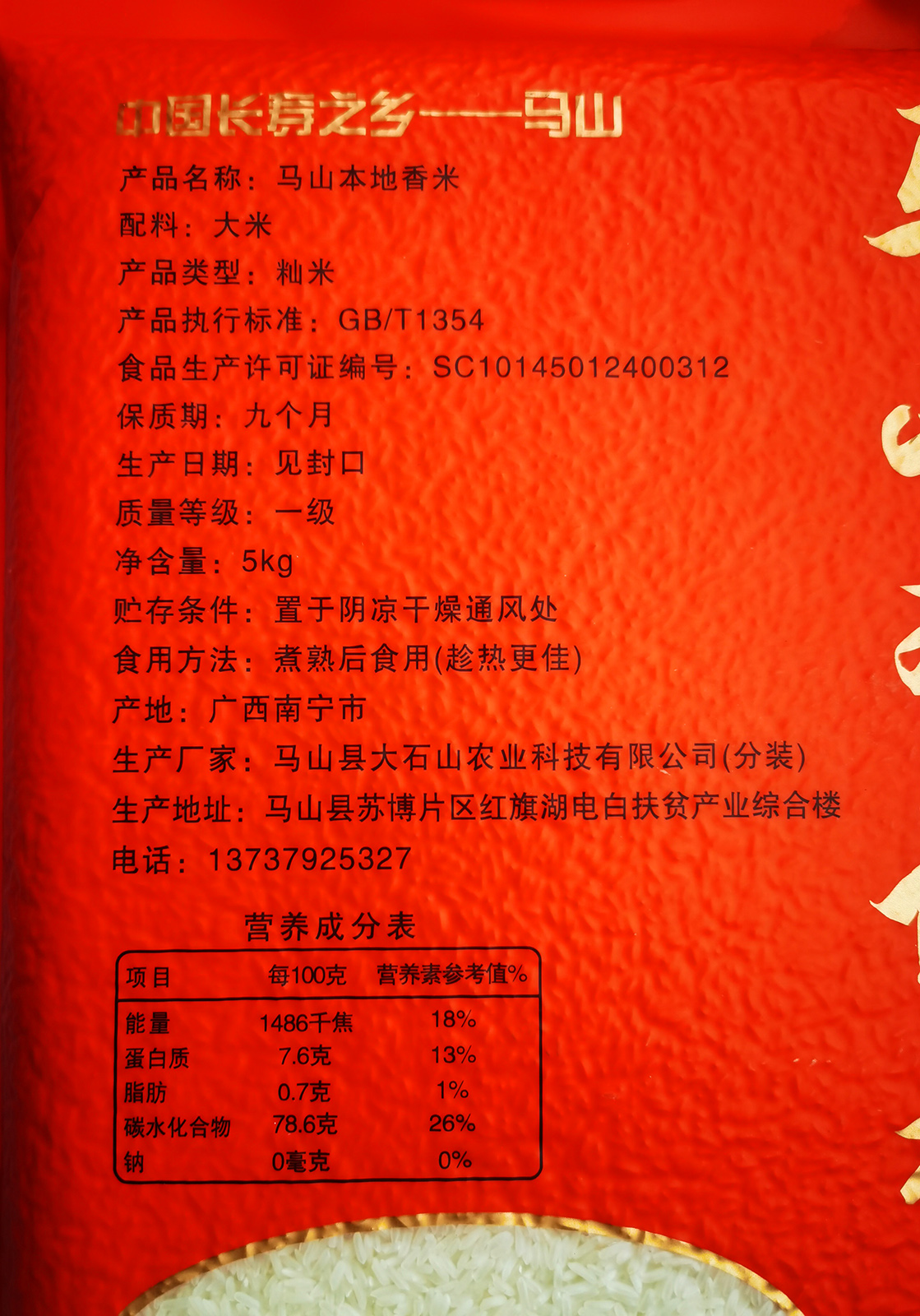 【大石山】大吉大利本地香米(红款)真空5kg