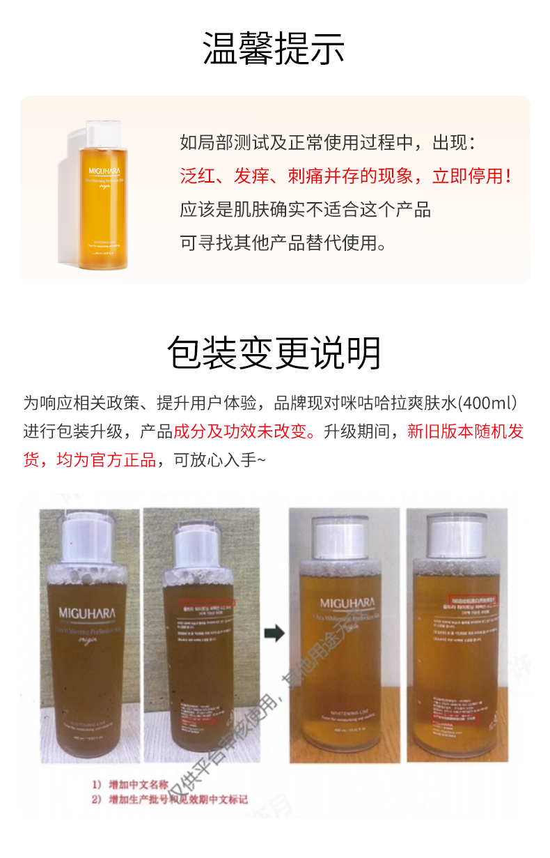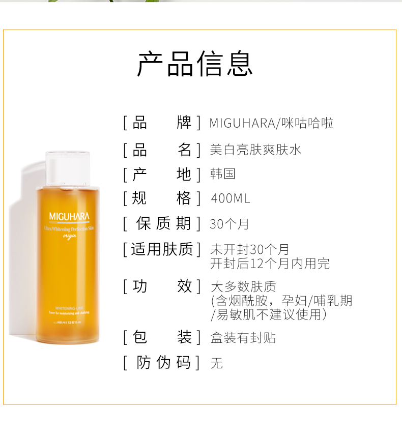MIGUHARA 咪咕哈啦美白亮肤爽肤水 400ml