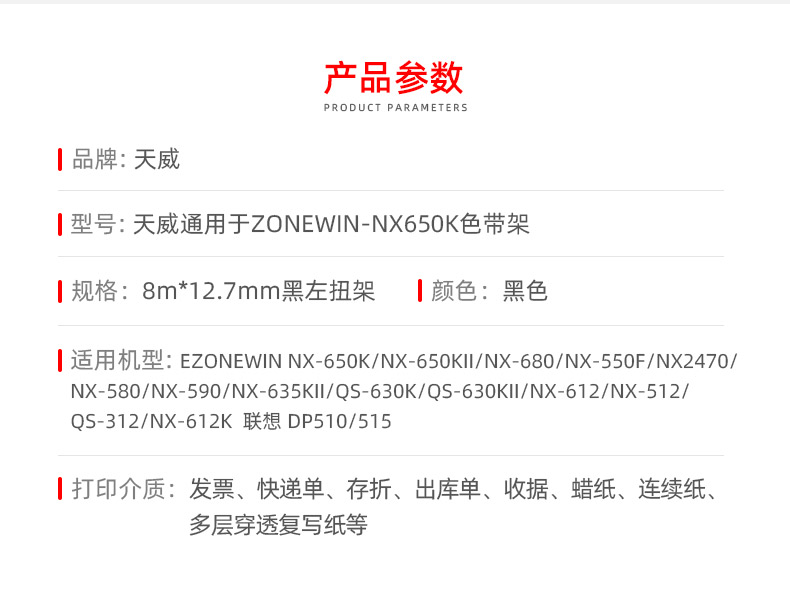 天威 中盈 NX650K色带架适用中盈 NX-650KII NX-680 NX-550F NX2470 NX-580 NX-590 NX-635KII打印机色带架
