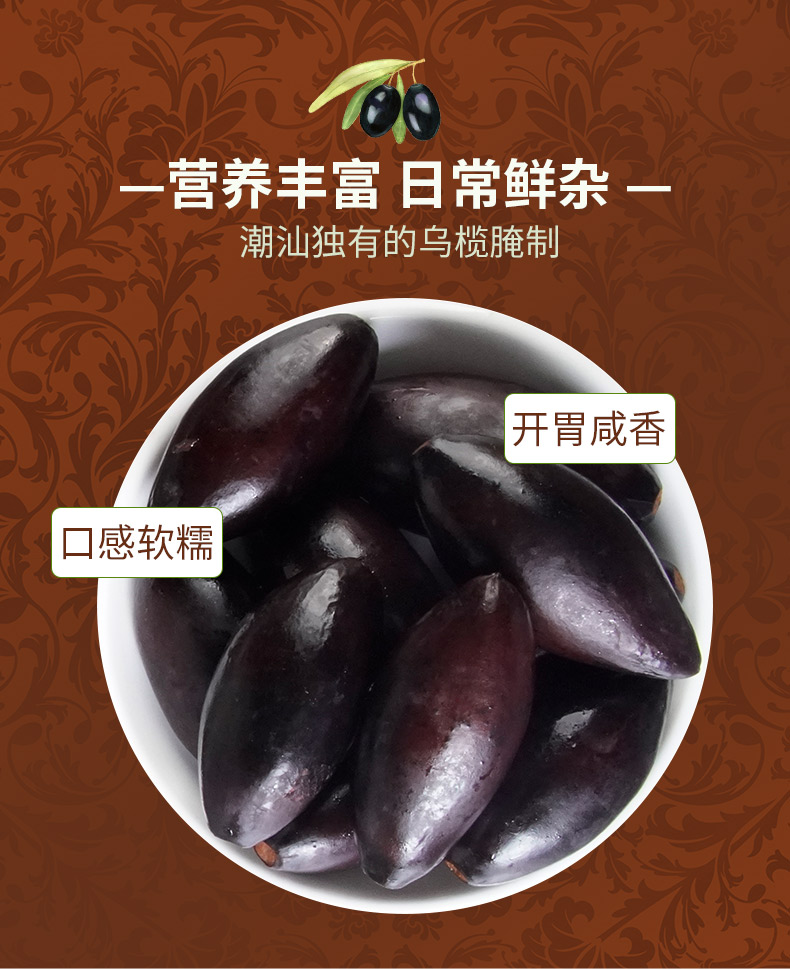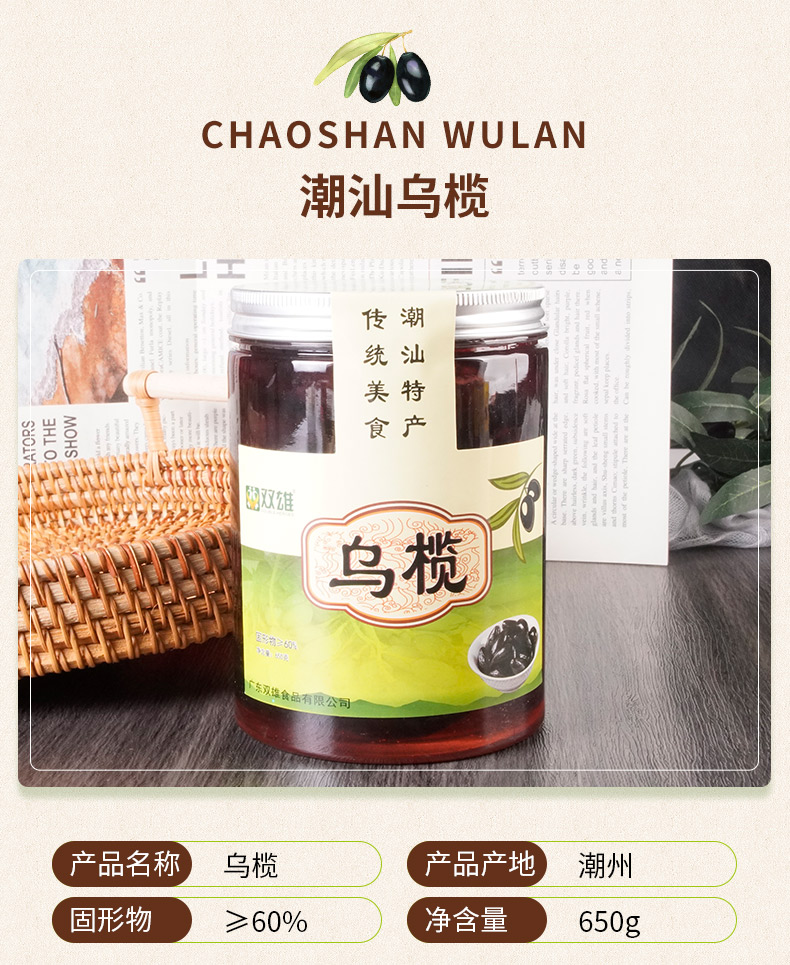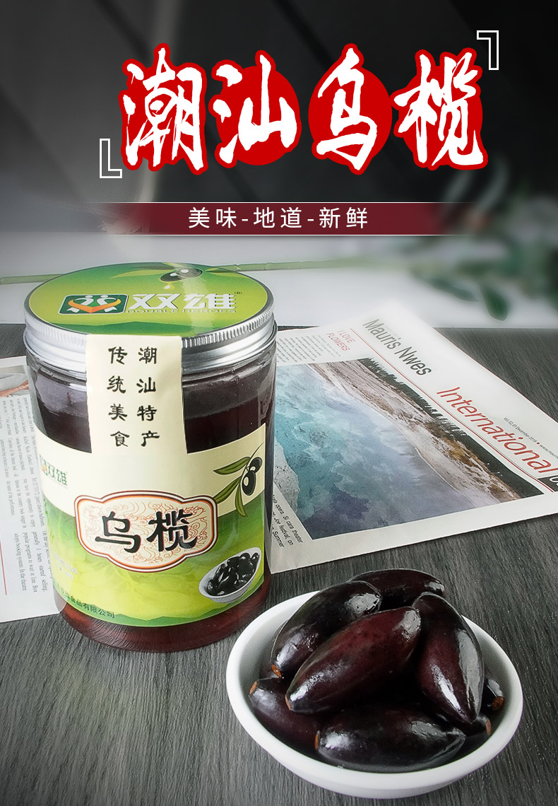 【寻味潮汕】双雄潮汕特产乌橄榄腌制咸榄油榄乌榄杂咸瓶装650g/瓶