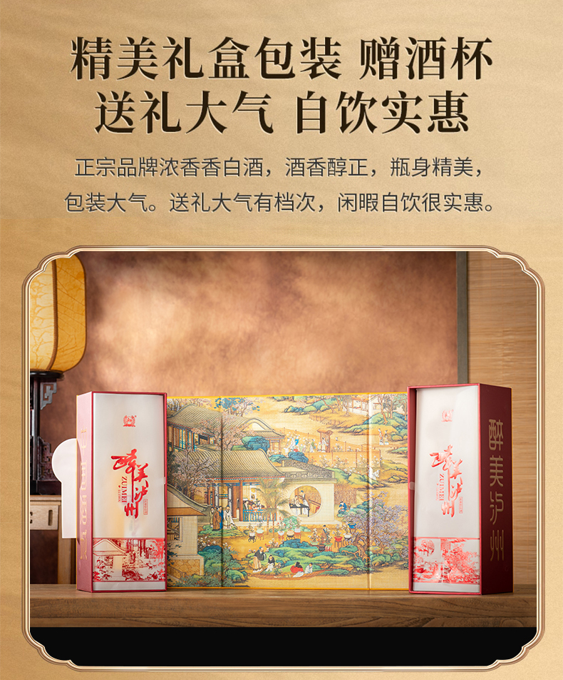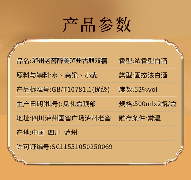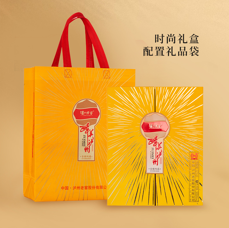 泸州老窖醉美泸州古雅双禧52度浓香型白酒500ml*2瓶双支礼盒装,城市名片命名,帝皇黄高端礼盒