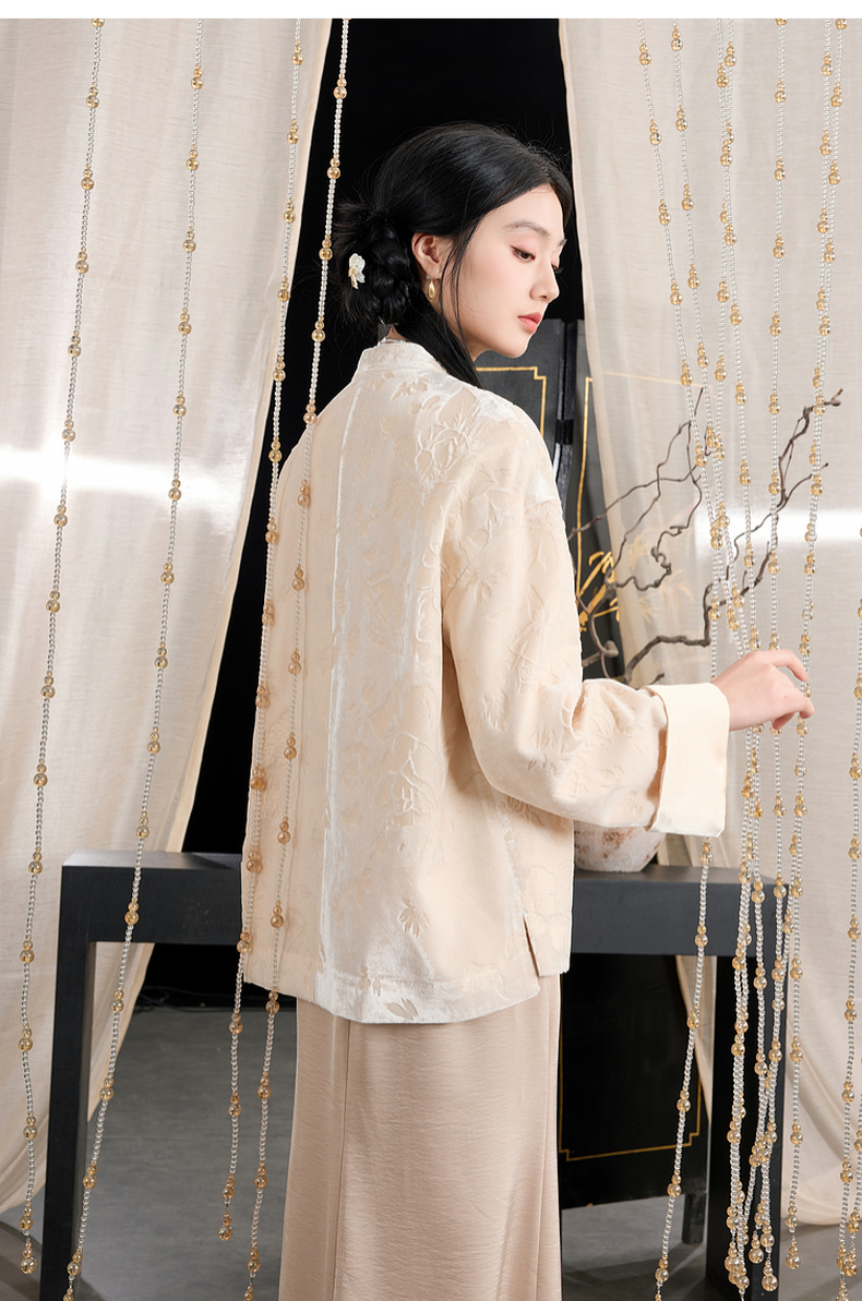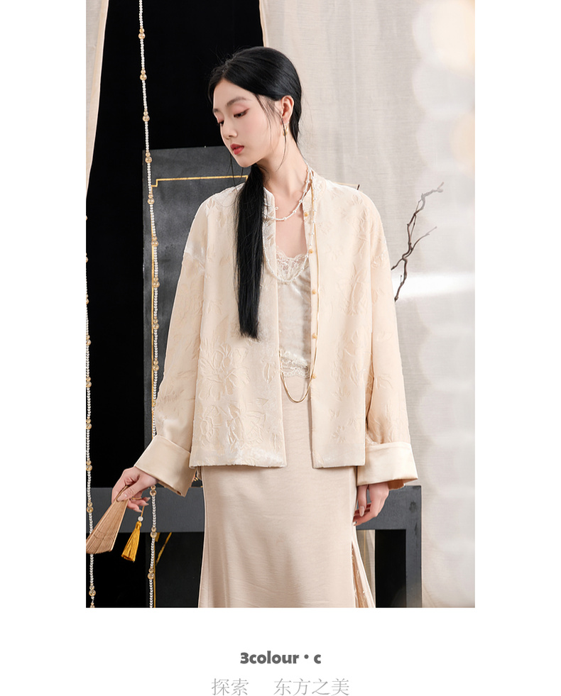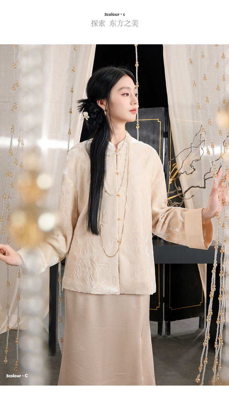 三彩【月影流光】2025秋季新款立领丝绒外套长袖上衣开衫宽松中式C