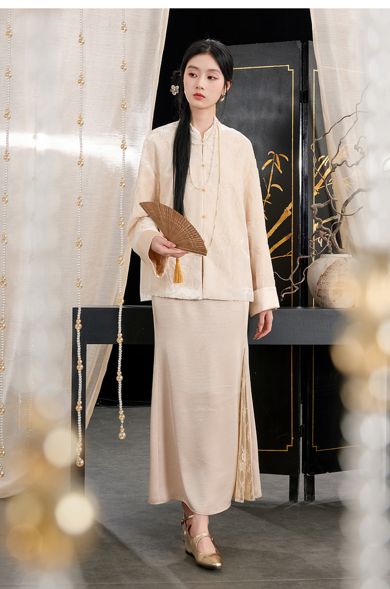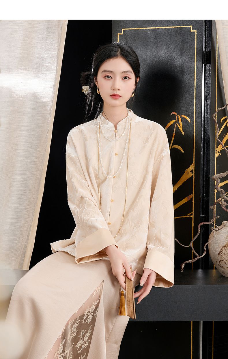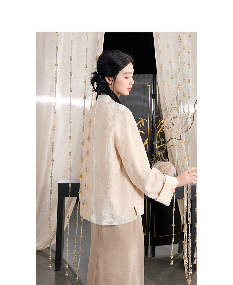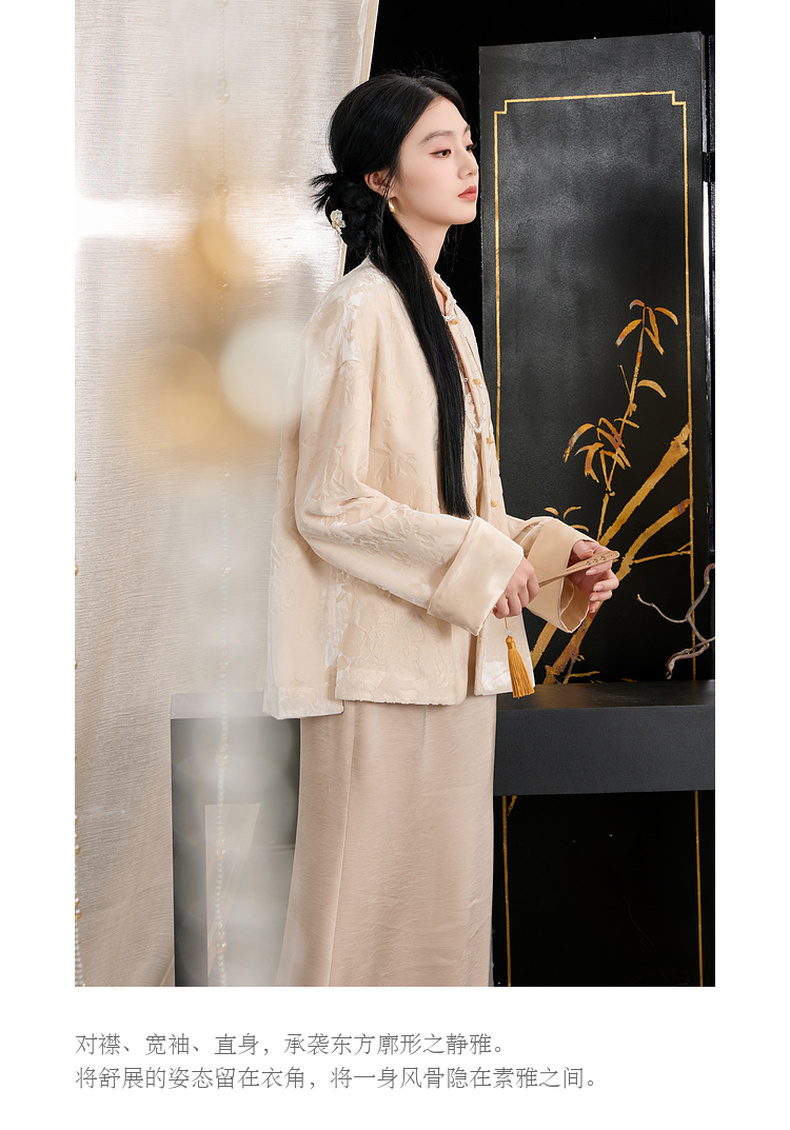 三彩【月影流光】2025秋季新款立领丝绒外套长袖上衣开衫宽松中式C