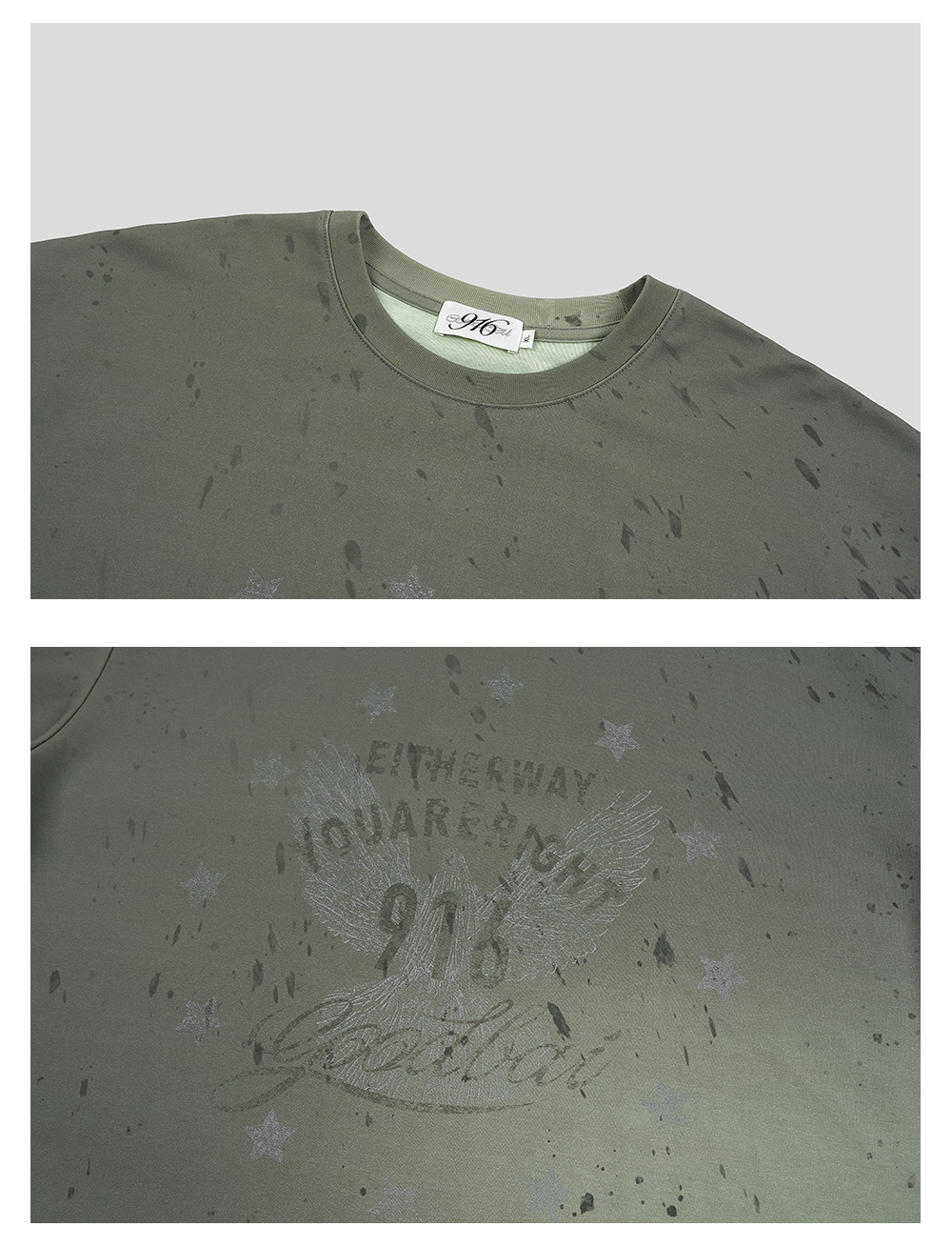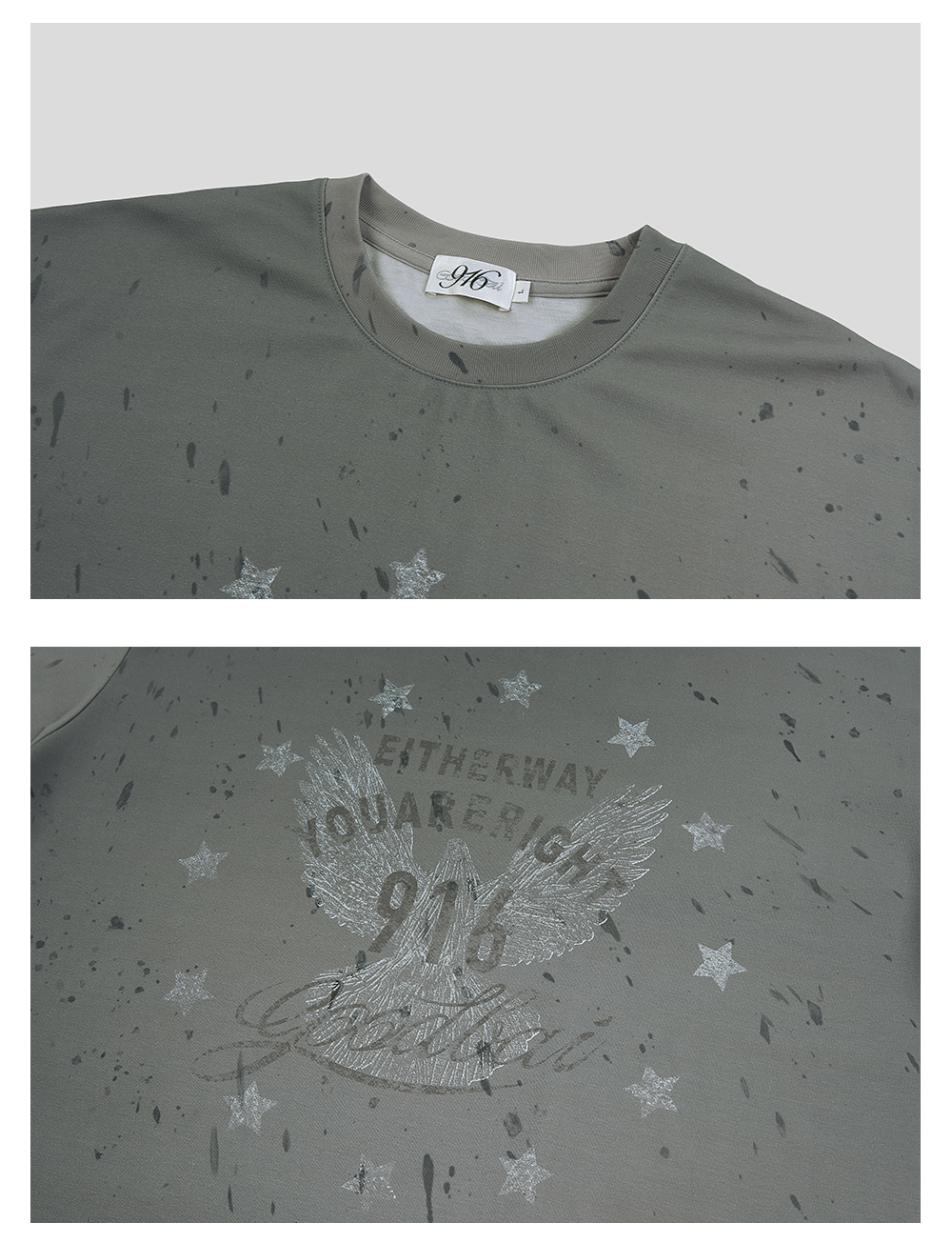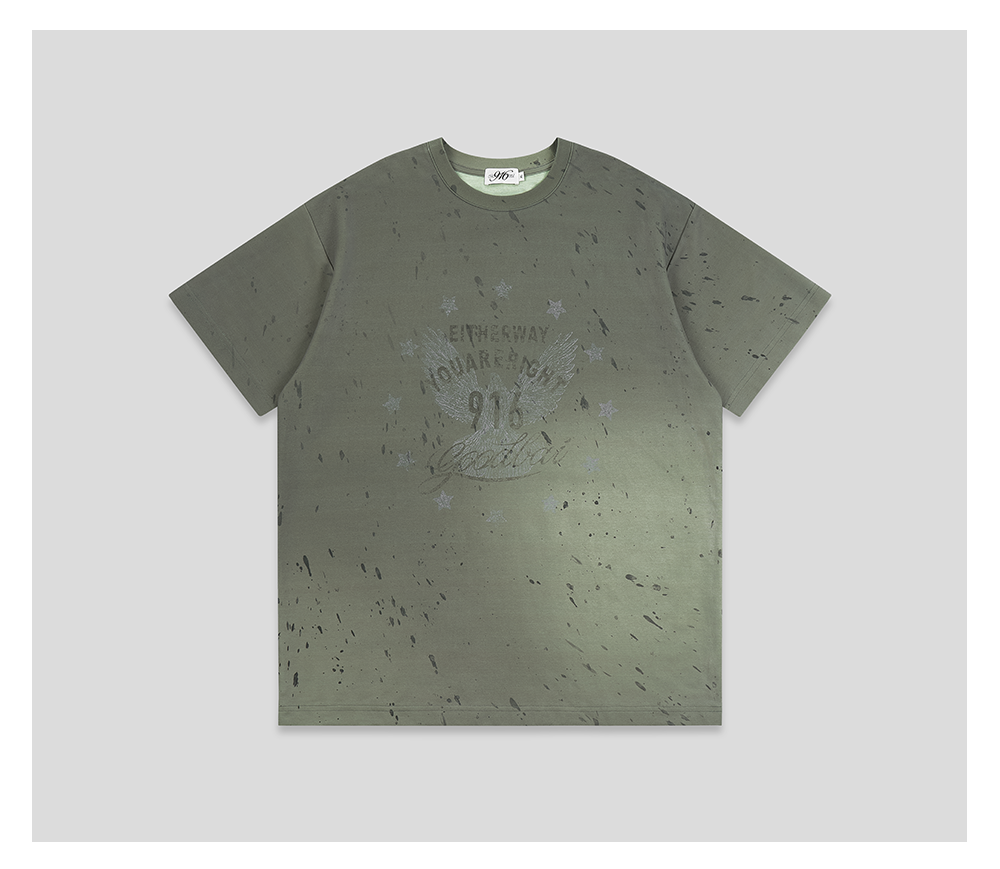 GOODBAI 916 扇形slogan泼墨渐变圆领oversize短袖T恤