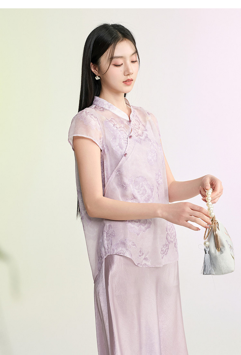 三彩【煦色韶光】2026春季新款新中式提花小衫宽松上衣吊带C