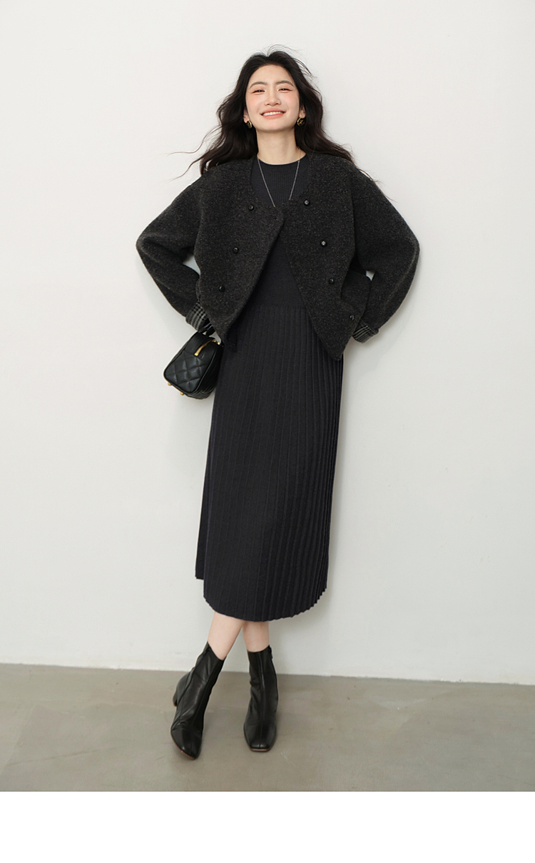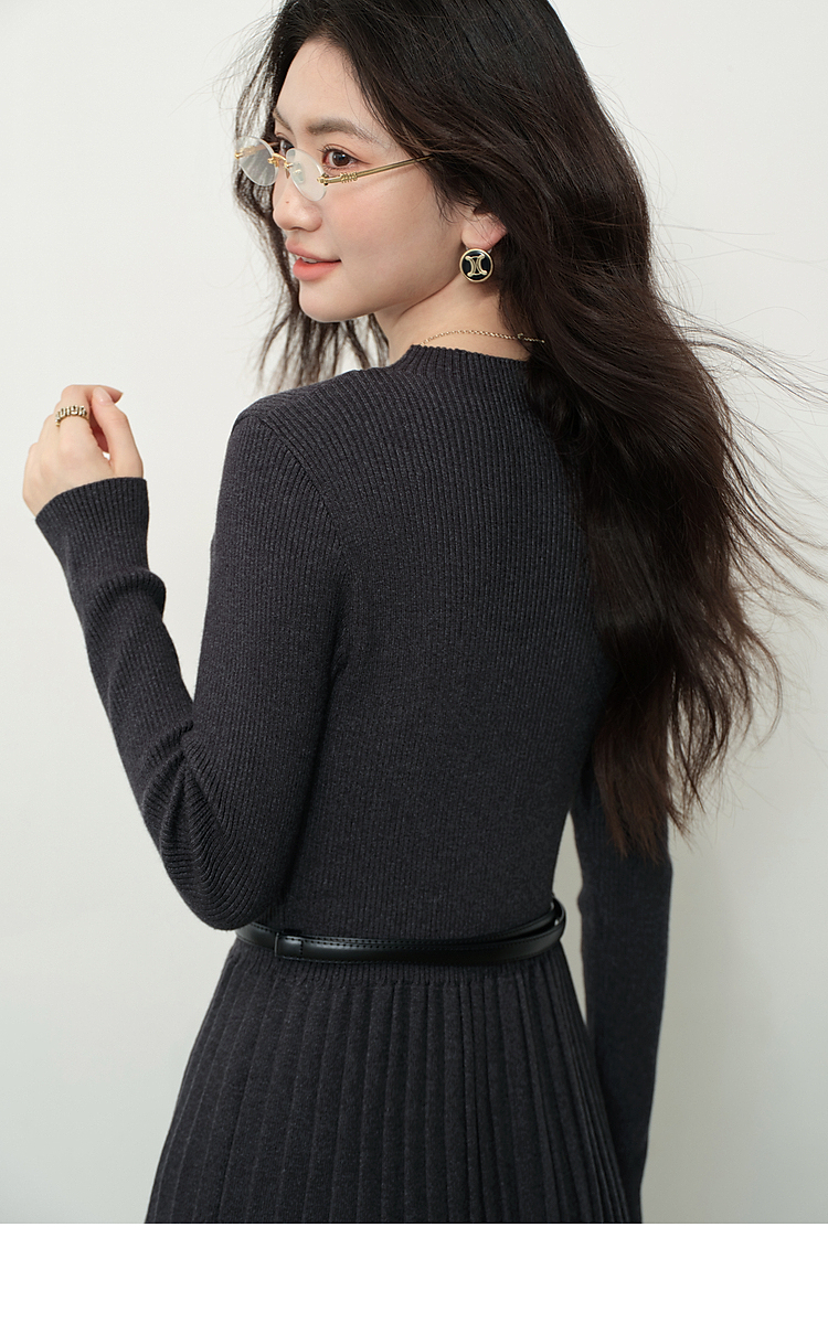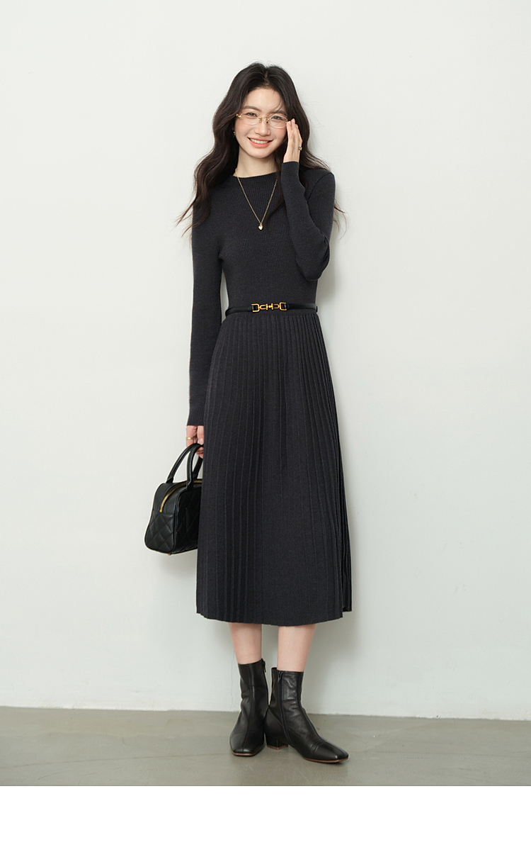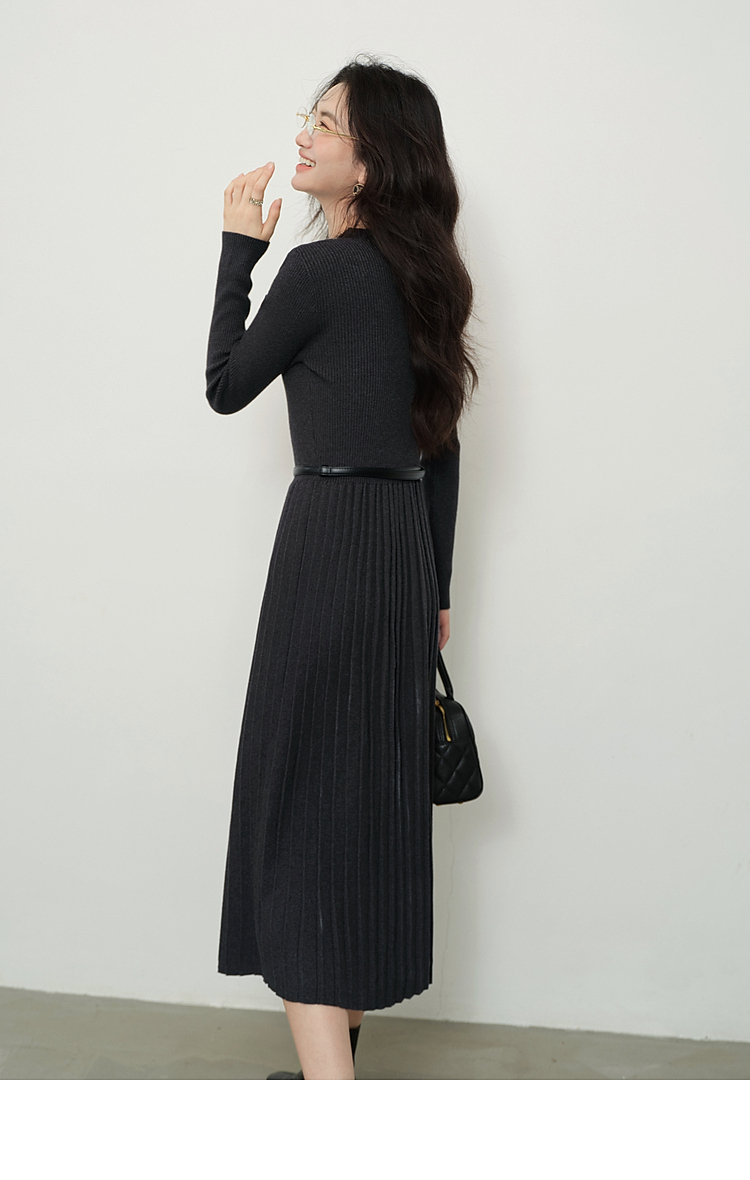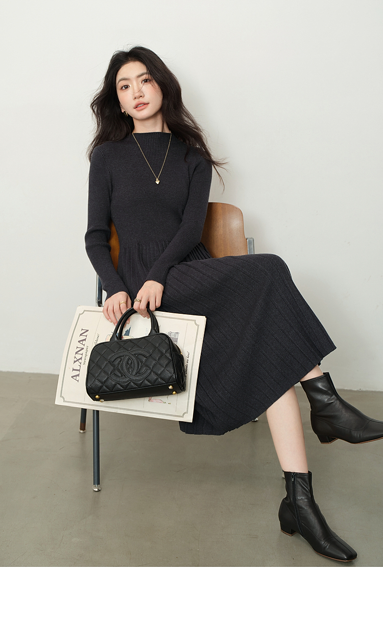 鹿向南「祈愿少女」法式气质灰色针织连衣裙女2025秋冬显瘦打底裙