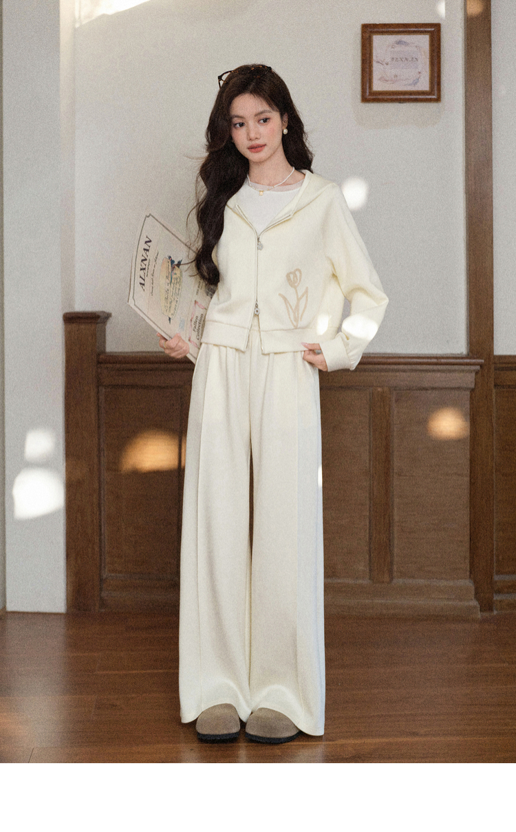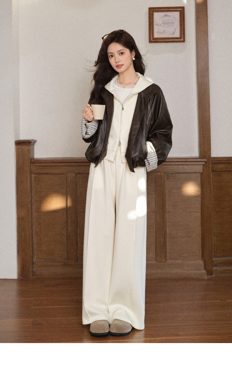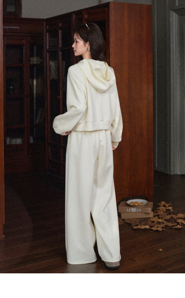 鹿向南「软糯糯」杏色百搭休闲裤女秋冬新款宽松显瘦垂感长款裤子