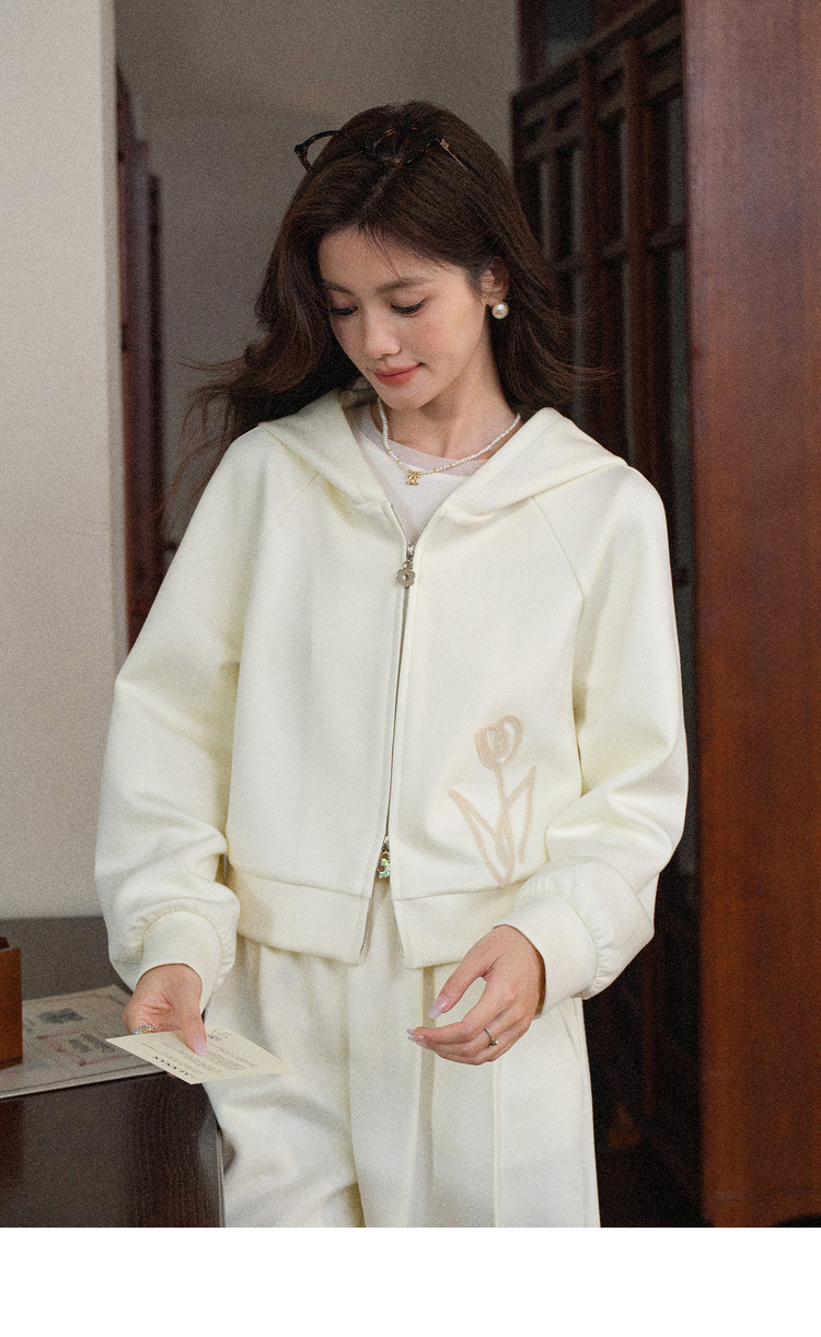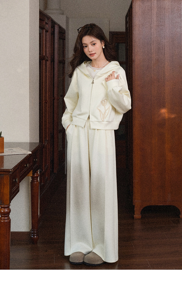 鹿向南「云层花影」杏色宽松直筒休闲裤