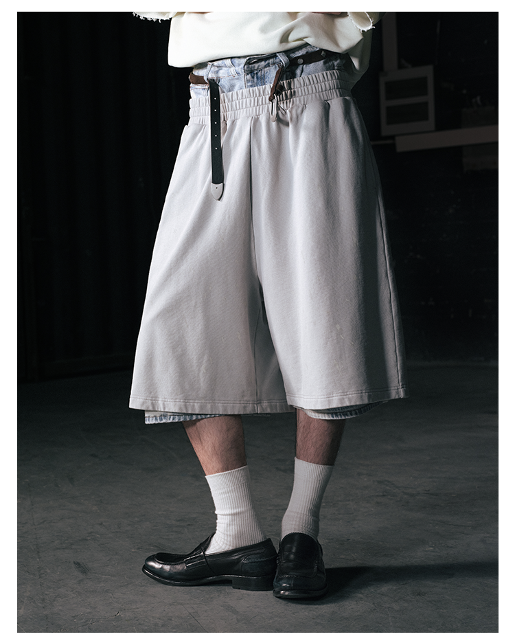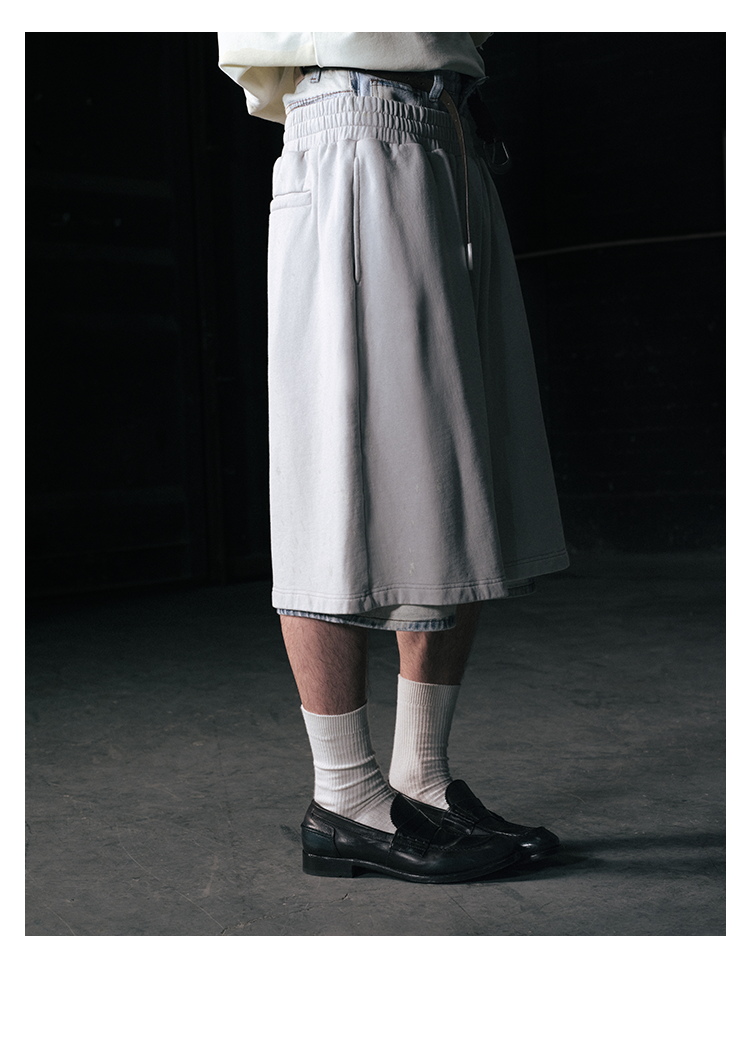 GOODBAI 916 logo印花收腰泼墨宽松休闲短裤
