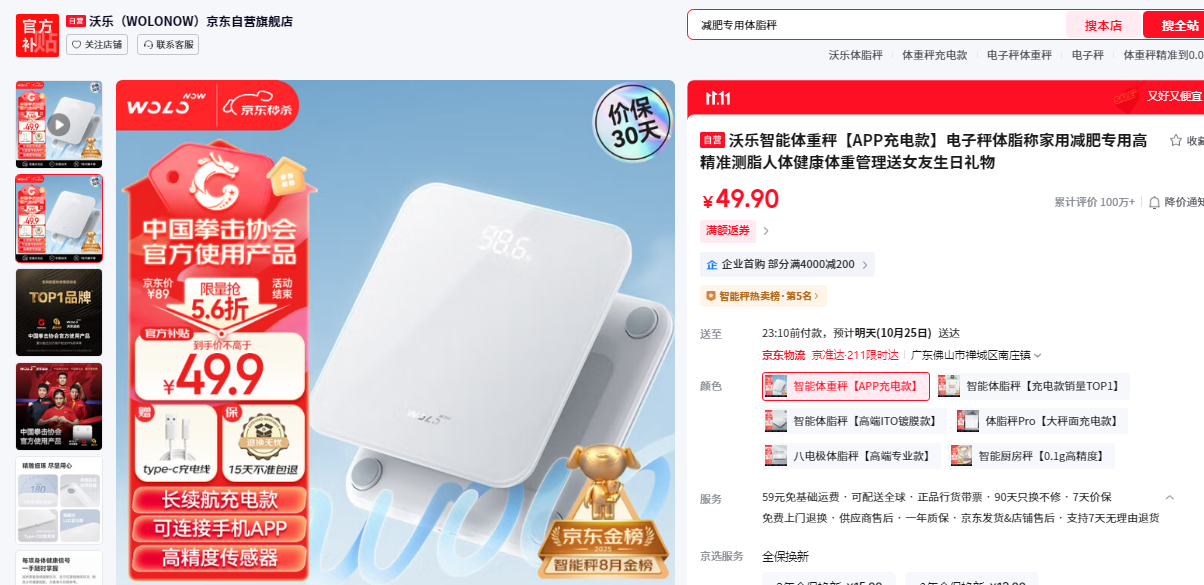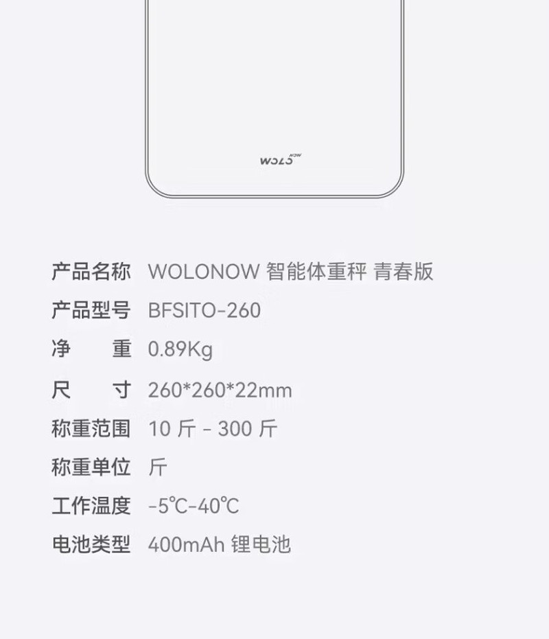 沃乐 智能体重秤 家用高精准体脂称 专用电子秤 BFSITO-260