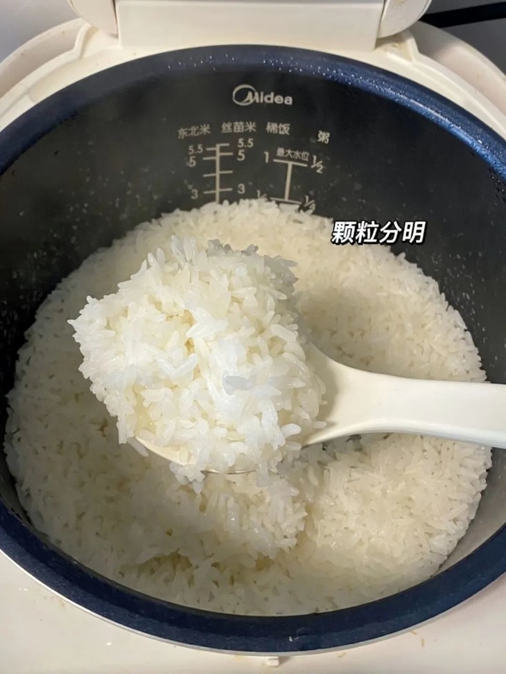 蒸好的米饭色泽莹润,粒粒分明,一水儿的漂亮!