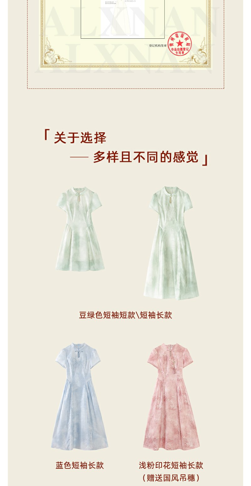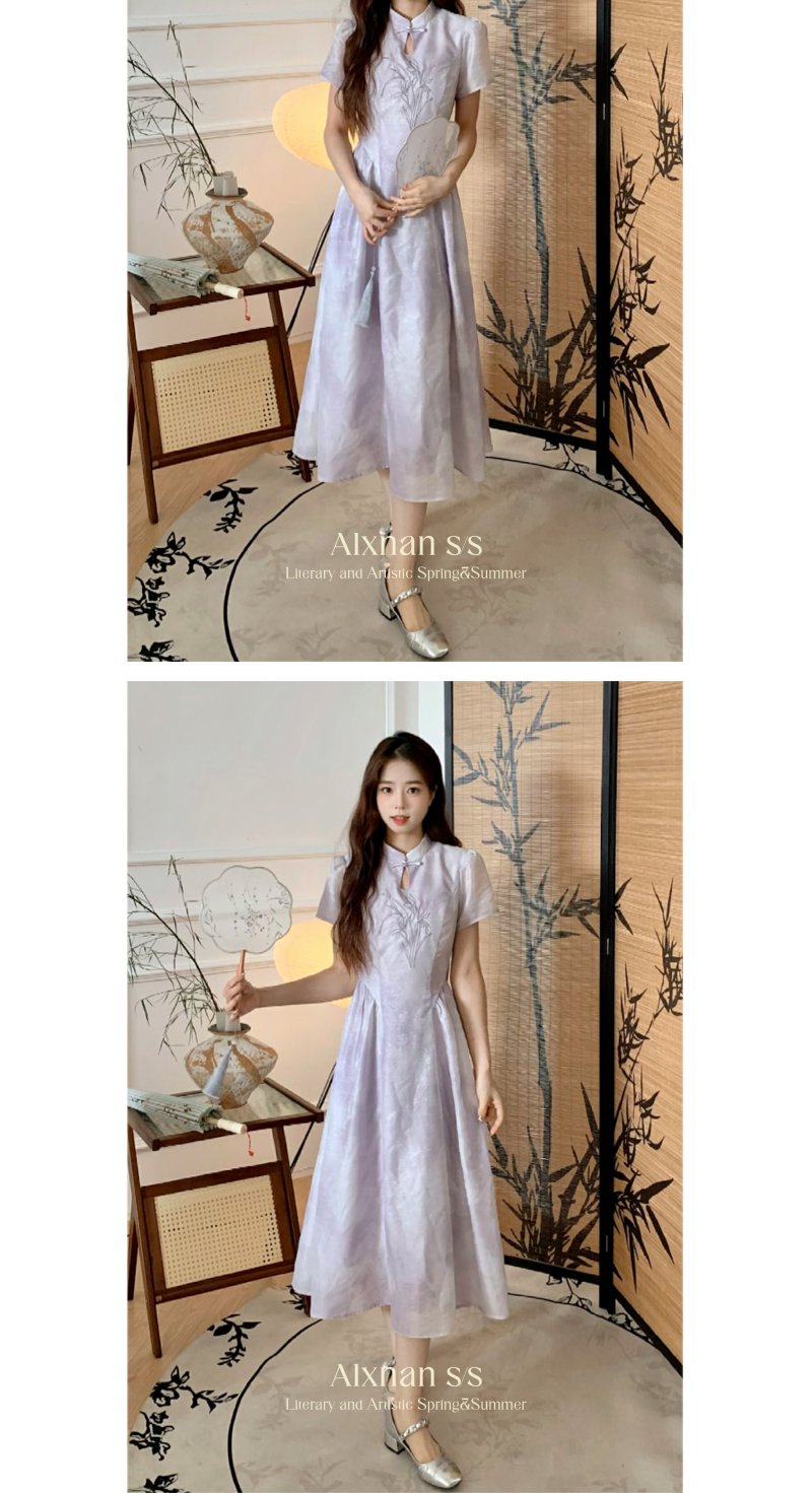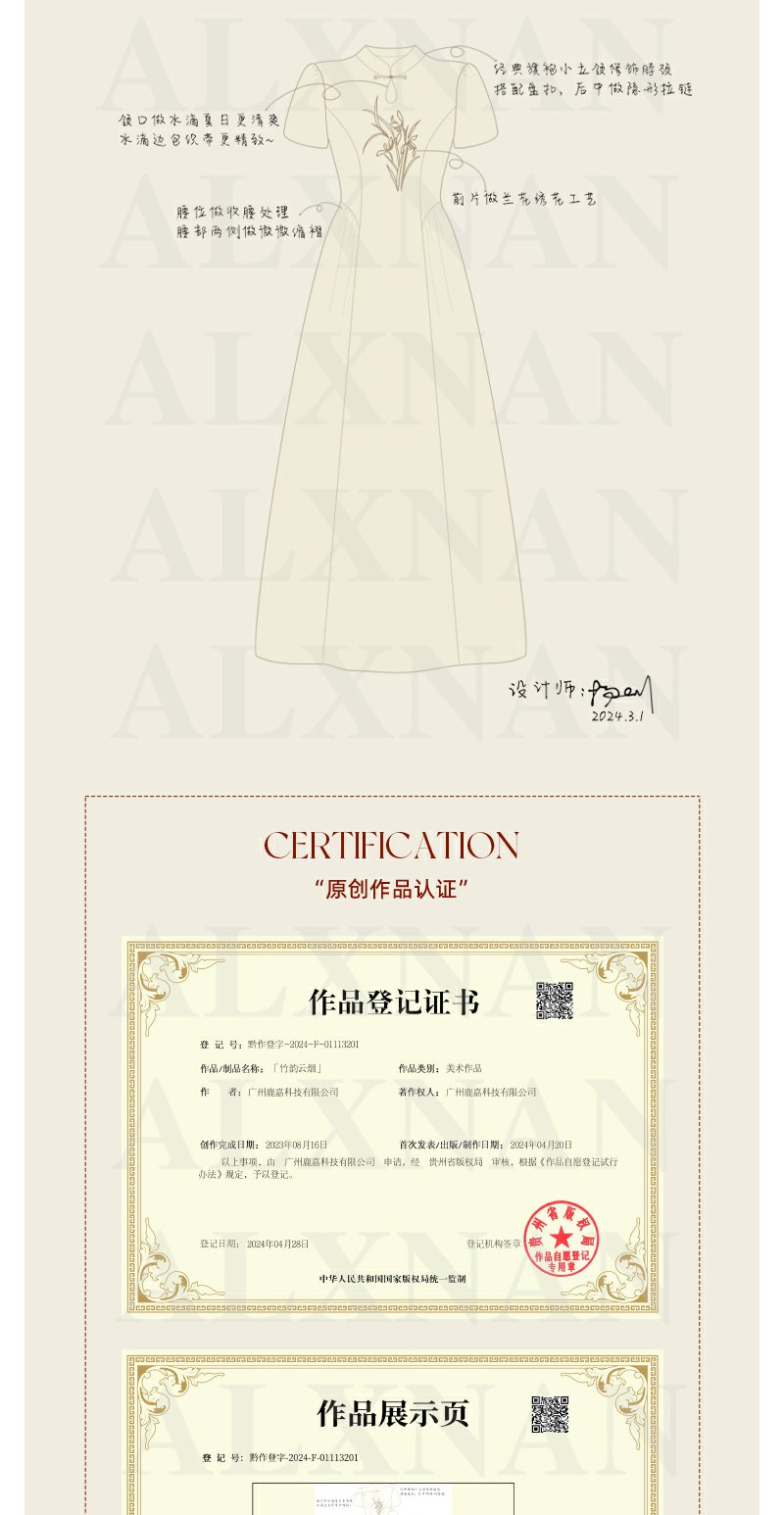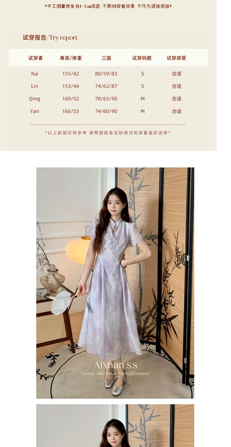 鹿向南 「竹韵云烟」新中式显瘦连衣裙2024夏季新款温柔气质长裙