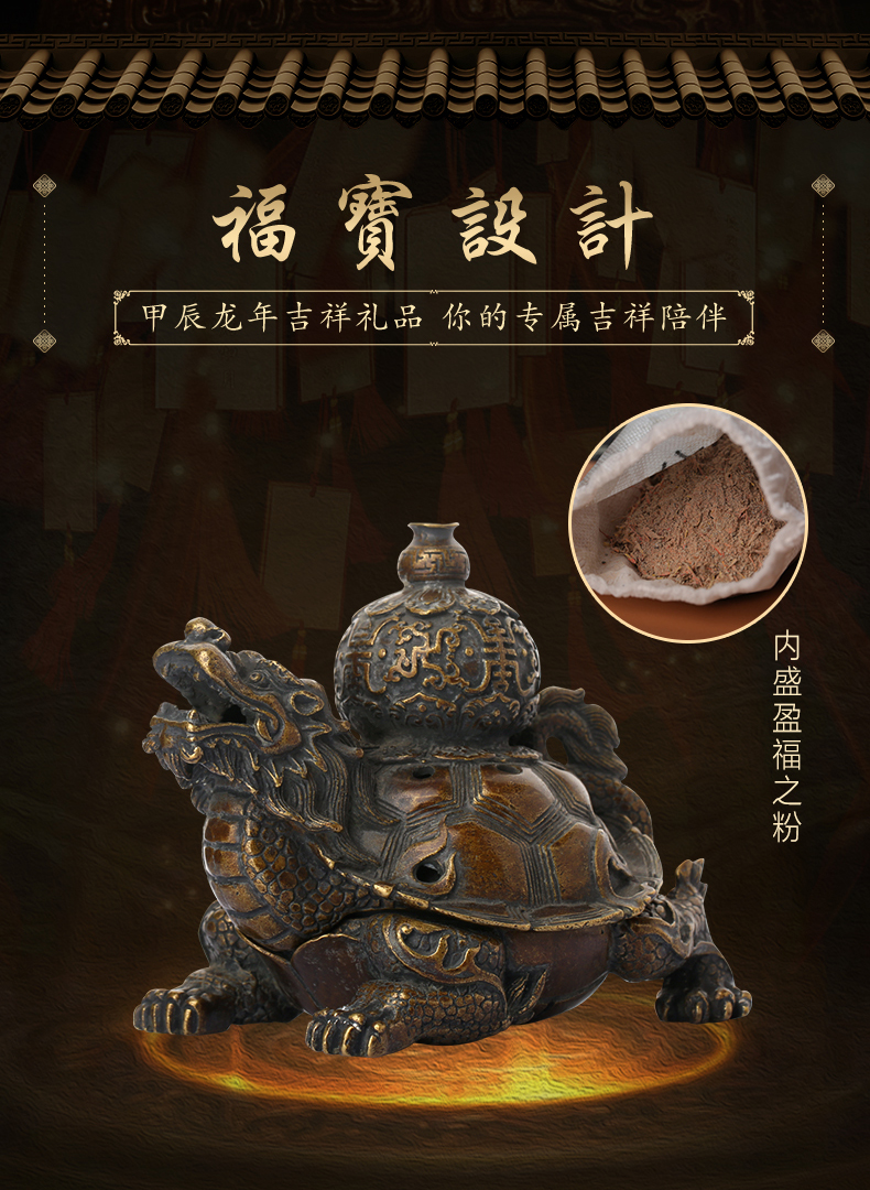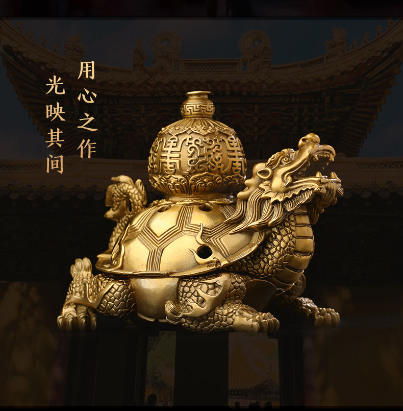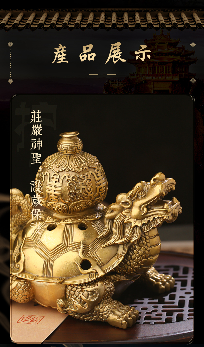 慈元阁定制黄铜瑶池添吉龙龟避火龙摆件家居摆设玄关办公室