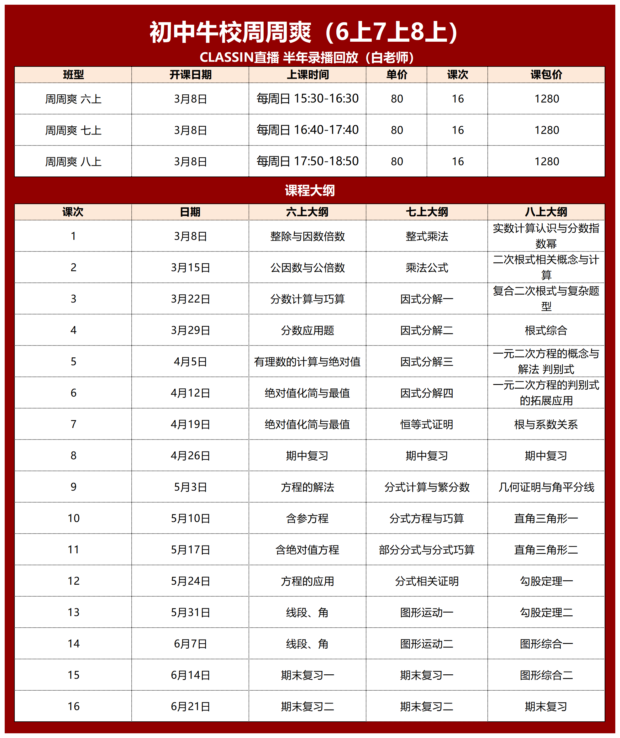 适合6-8年级,学有余力,想进一步提高校内成绩和数学应试能力的学生