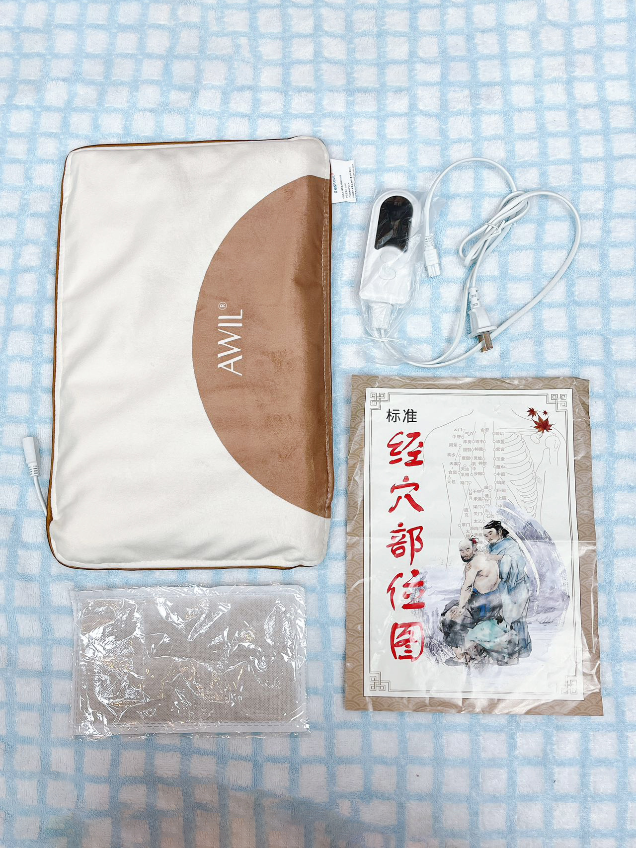 内含:艾绒垫片、藏青盐热敷袋、温控器、说明书
