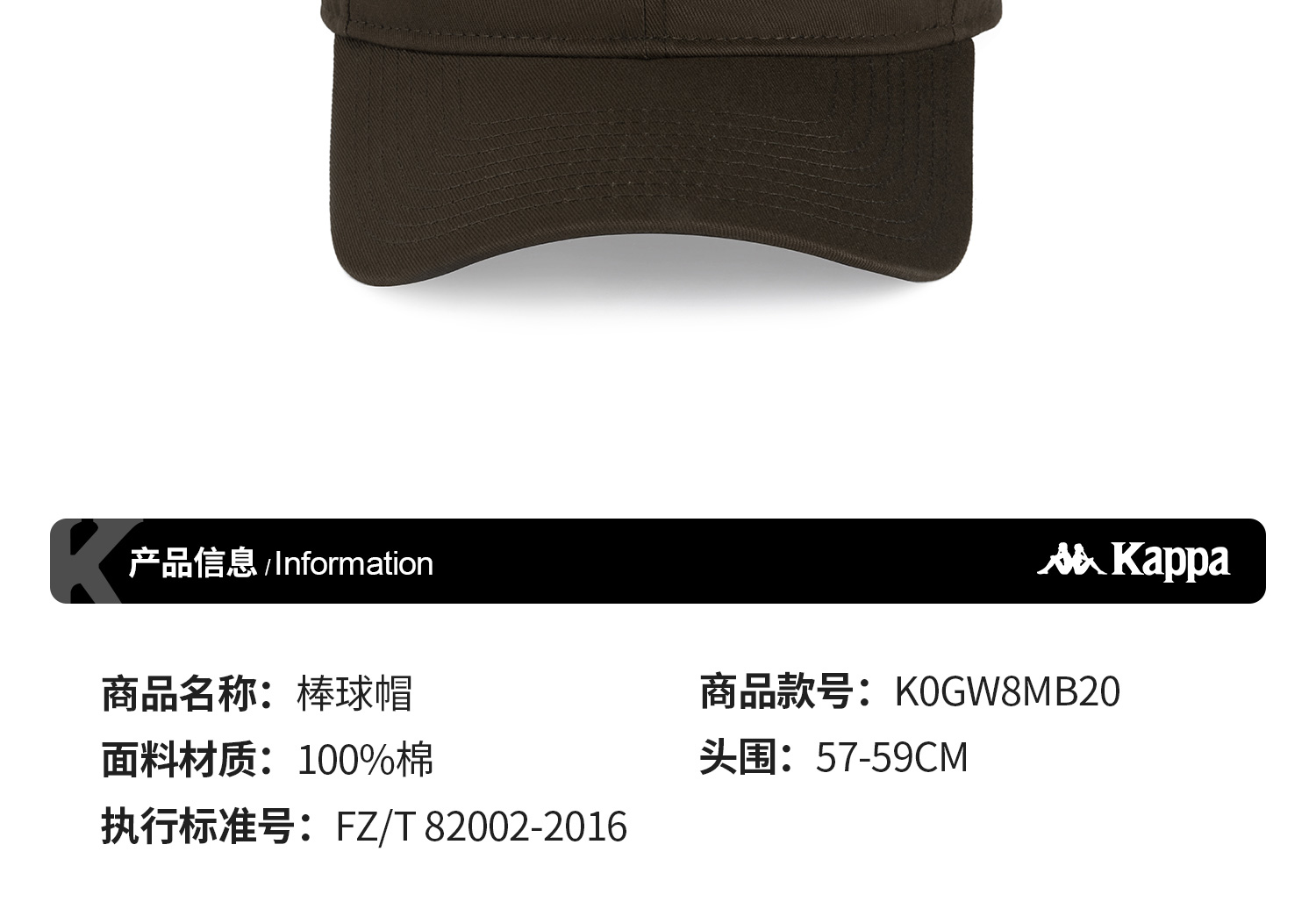 Kappa 2025新款黑色棒球帽男女遮阳鸭舌帽显脸小运动帽K0GW8MB20