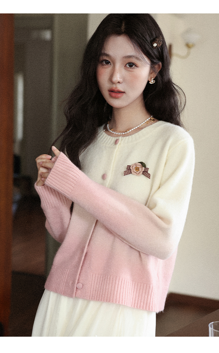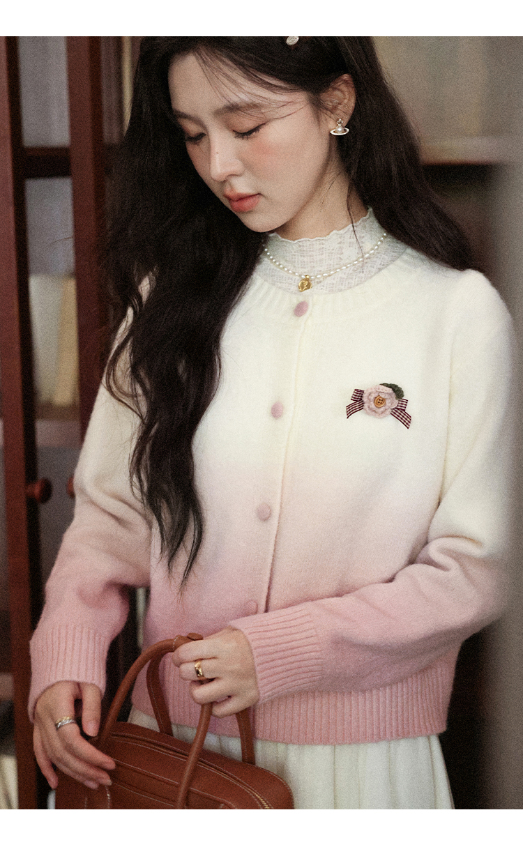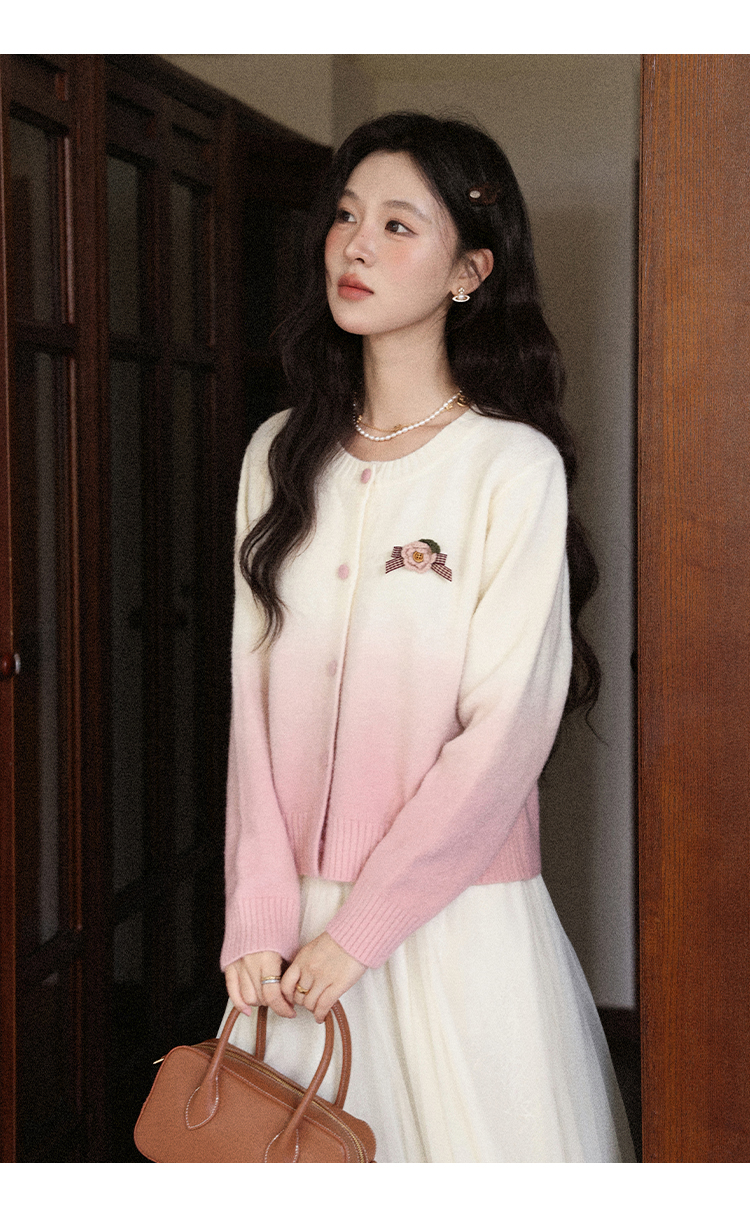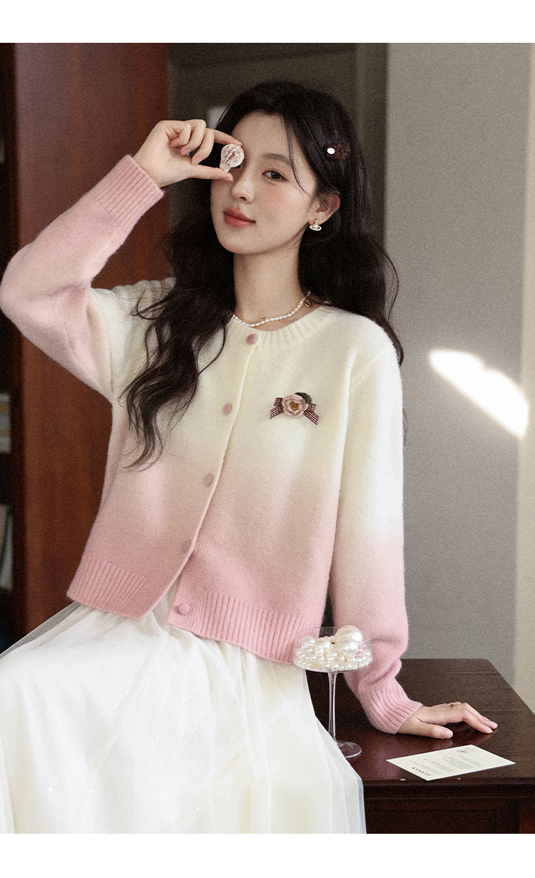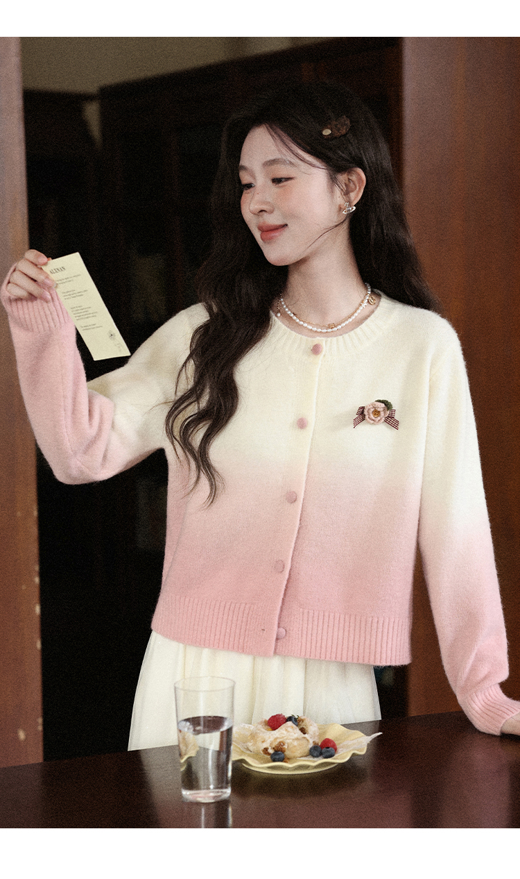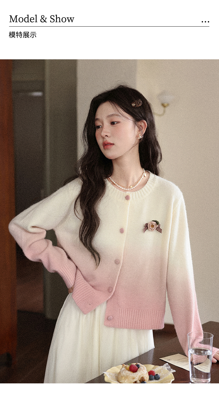 鹿向南「白桃慕斯」渐变色温柔风毛衣秋冬新款时尚圆领通勤上衣女