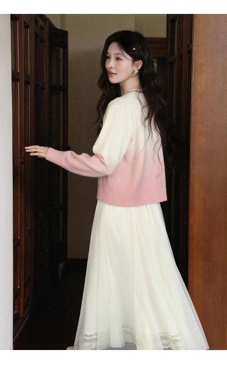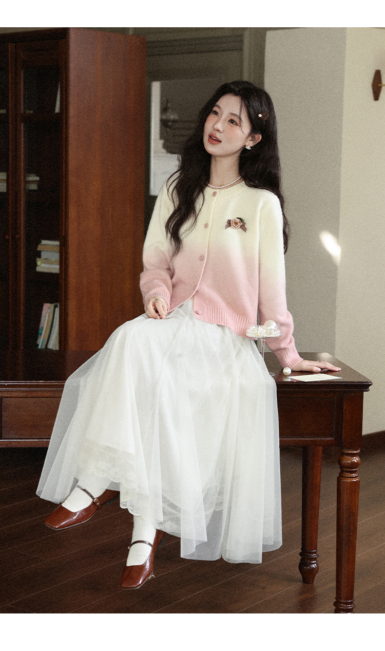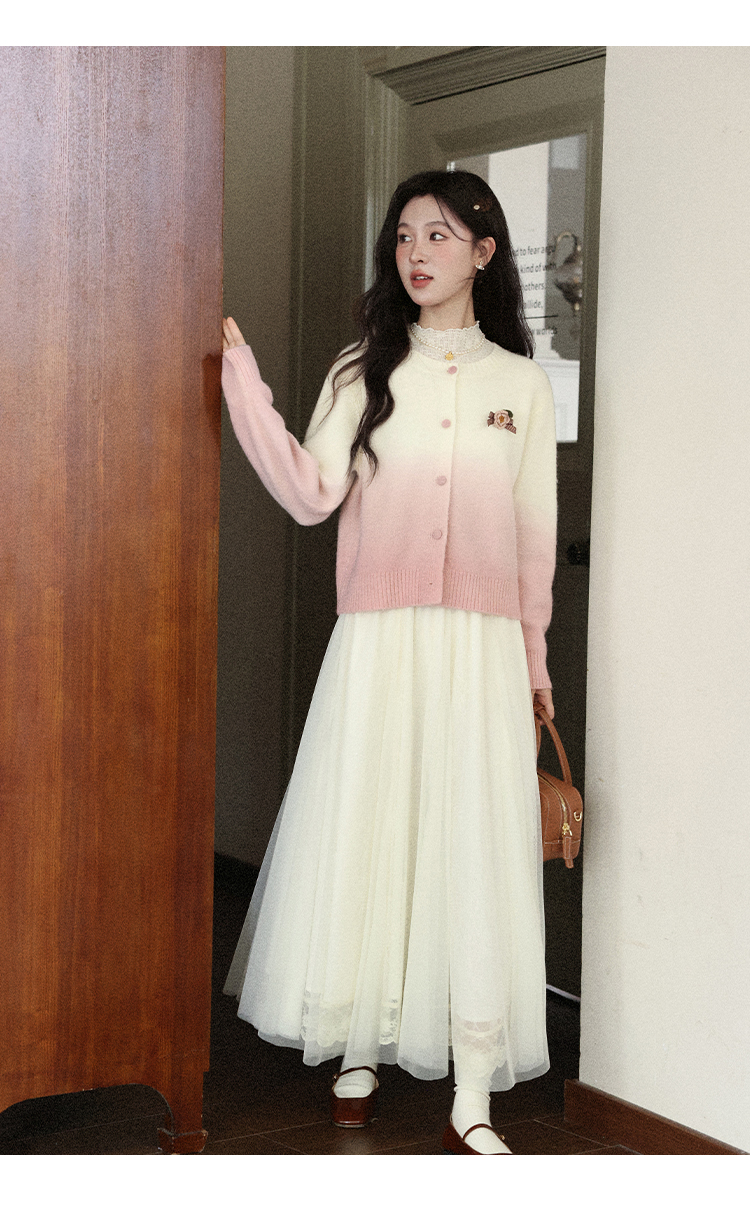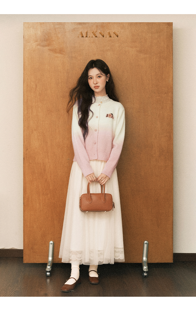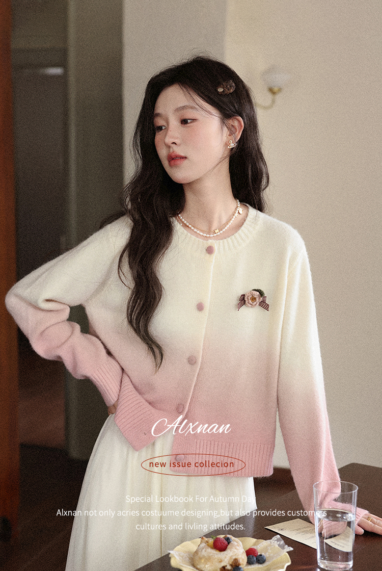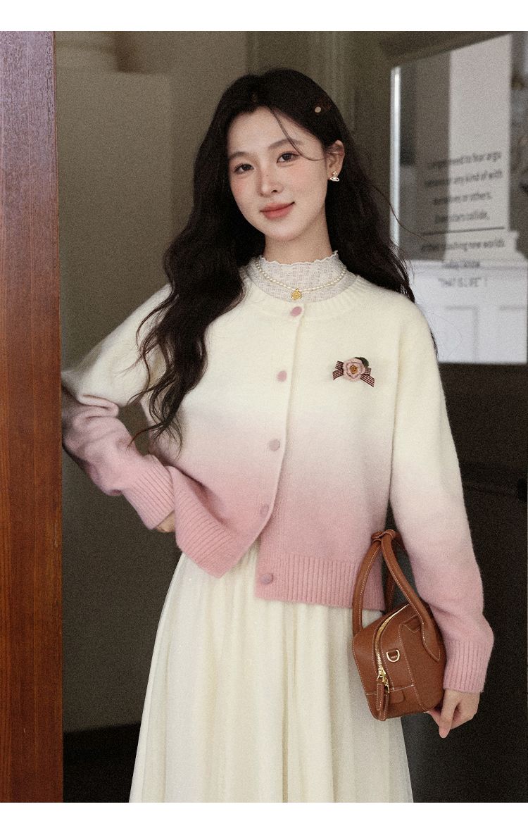 鹿向南「白桃慕斯」渐变色温柔风毛衣秋冬新款时尚圆领通勤上衣女