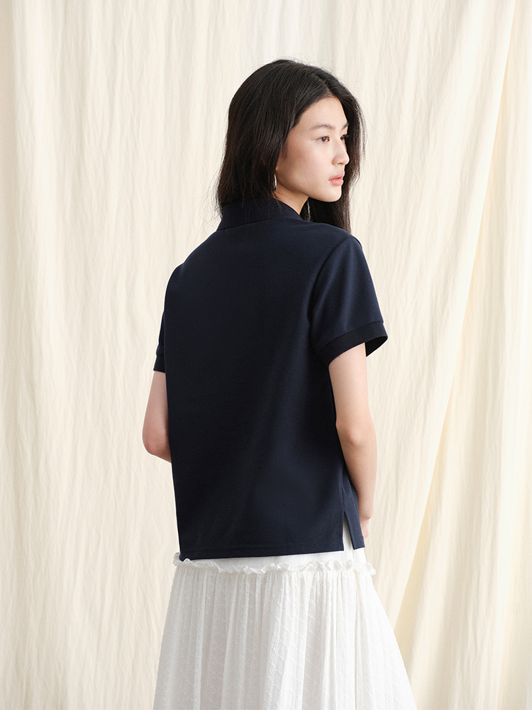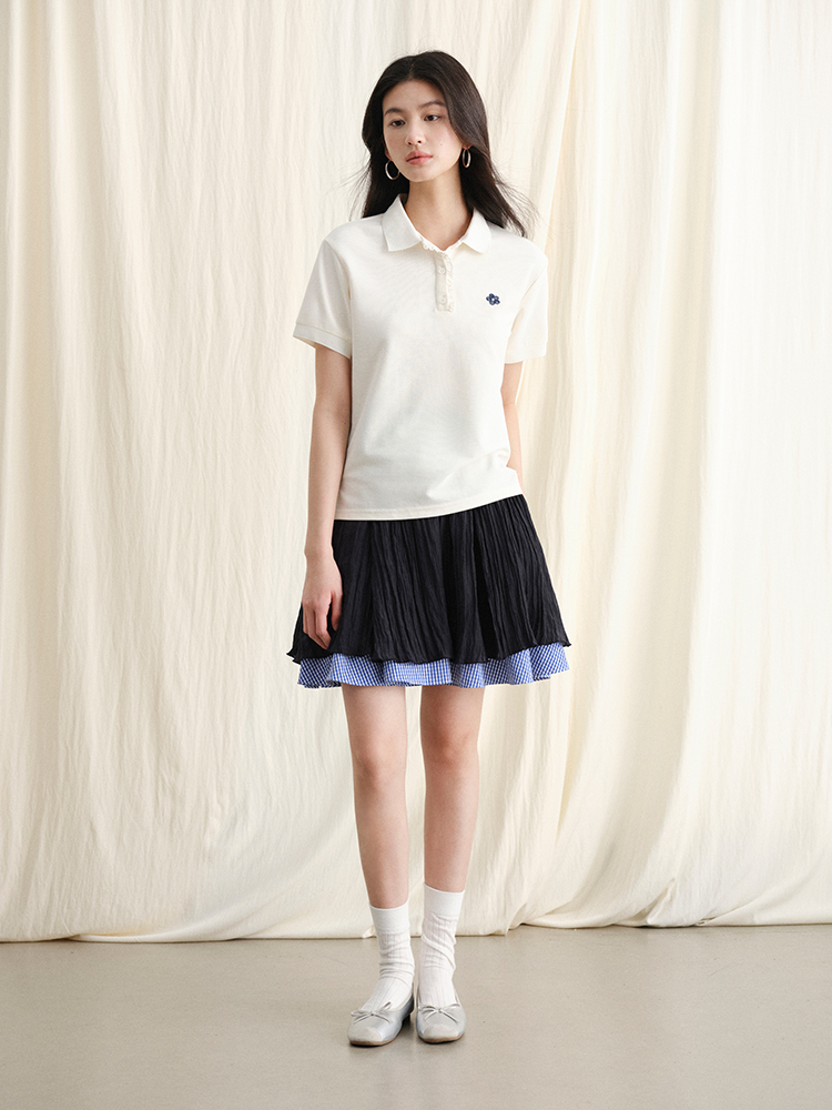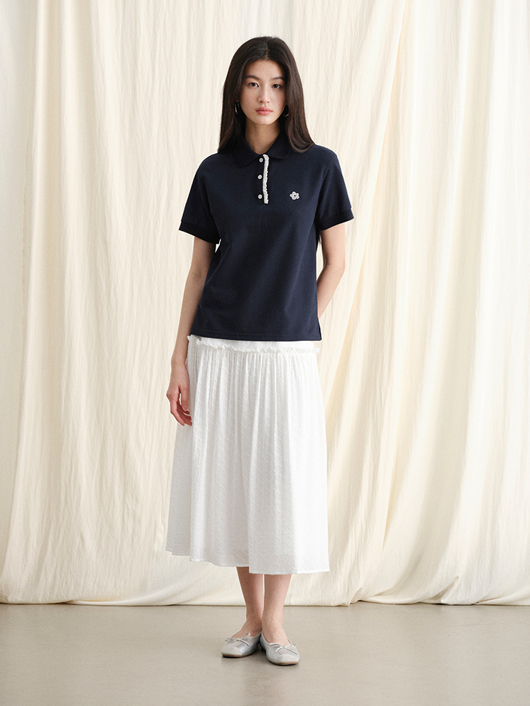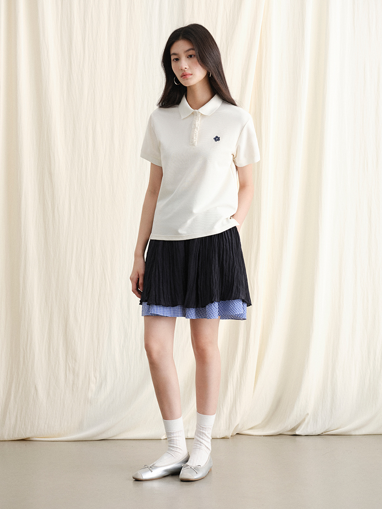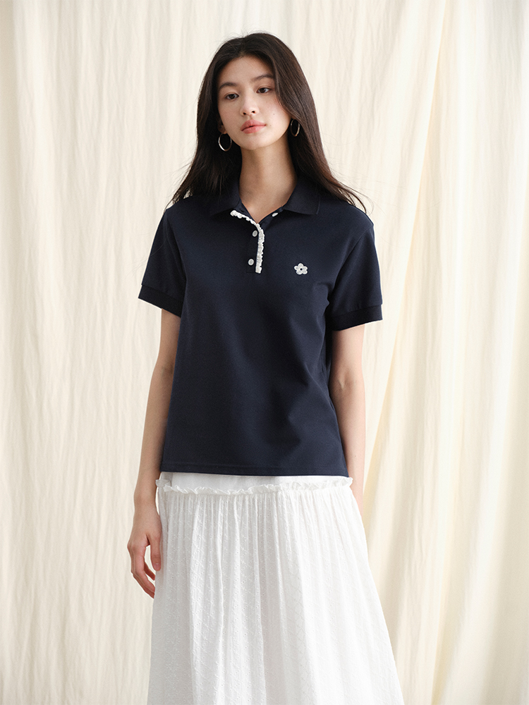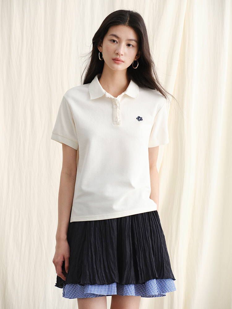 ForPoem 现货 24/SS原创设计经典百搭花边装饰花朵刺绣翻领短袖上衣