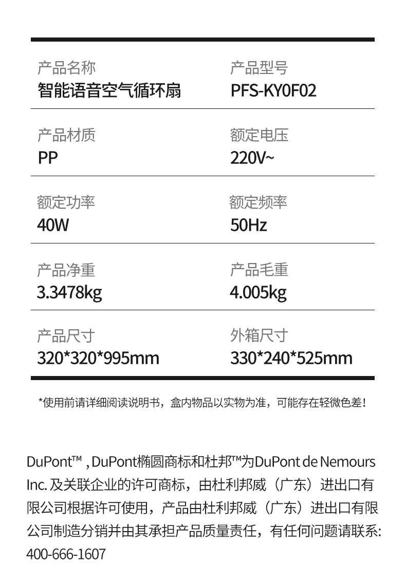 杜邦智能语音空气循环扇PFS-KY0F02—rxs