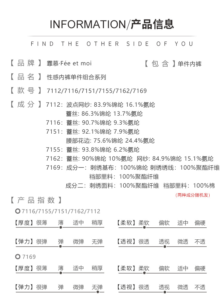 【情趣内衣】霏慕内裤组合7112/7116/7151/7155/7162/7169