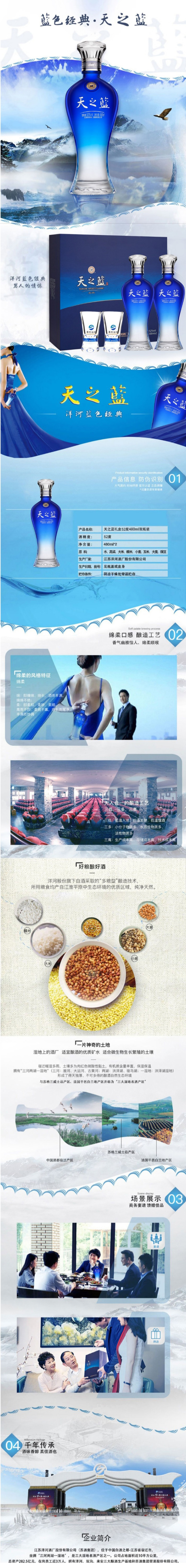 【单瓶284】洋河天之蓝 绵柔浓香型白酒 52度 480ml*2瓶 礼盒装 拍4发原箱