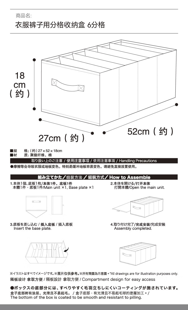 NITORI宜得利家居 衣柜衣橱收纳衣服裤子用分格可折叠收纳盒收纳袋