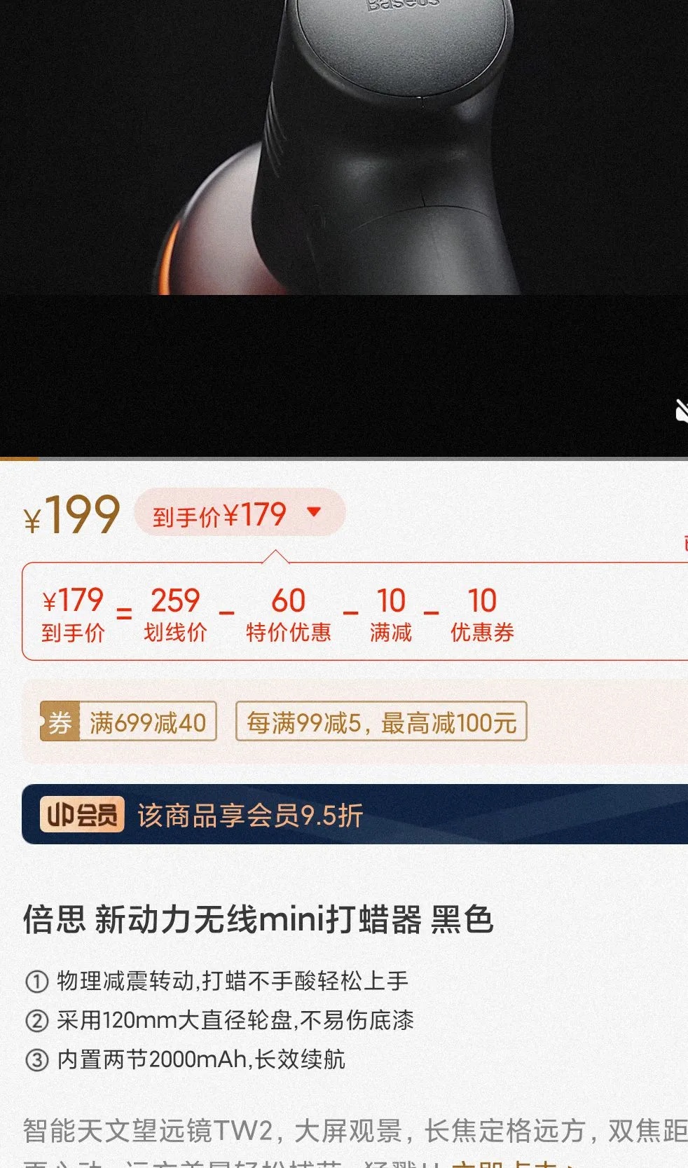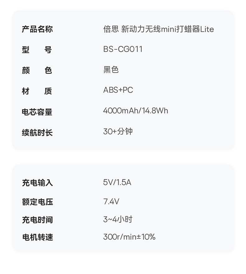 BASEUS/倍思 新动力无线mini打蜡器Lite BS-CG011 黑色