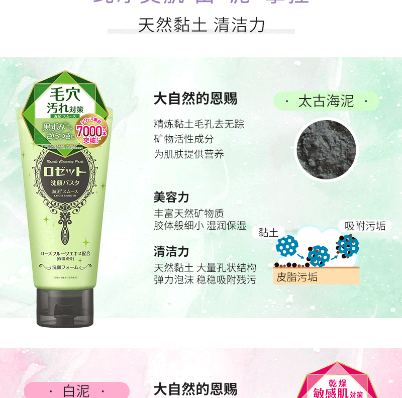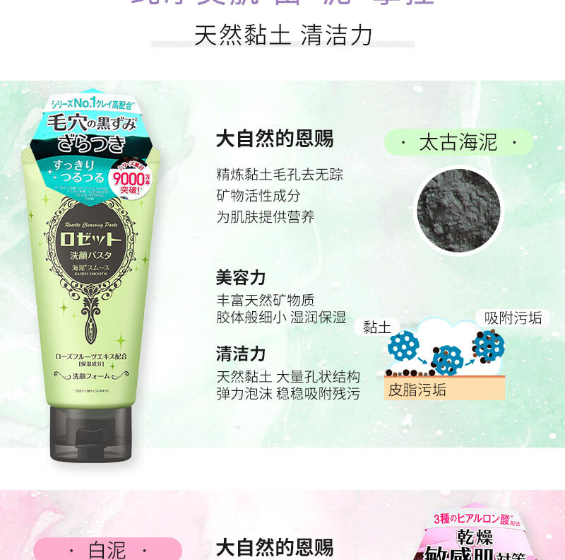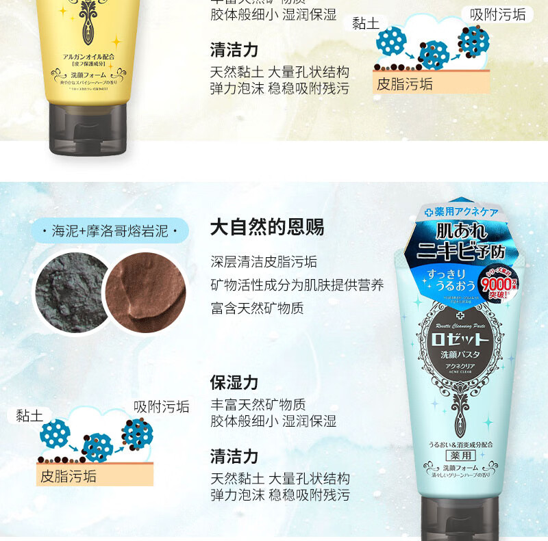 露姬婷(Rosette)日本进口海泥洗面奶 清洁毛孔 控油祛痘除螨去黑头男女通用洁面乳_MW