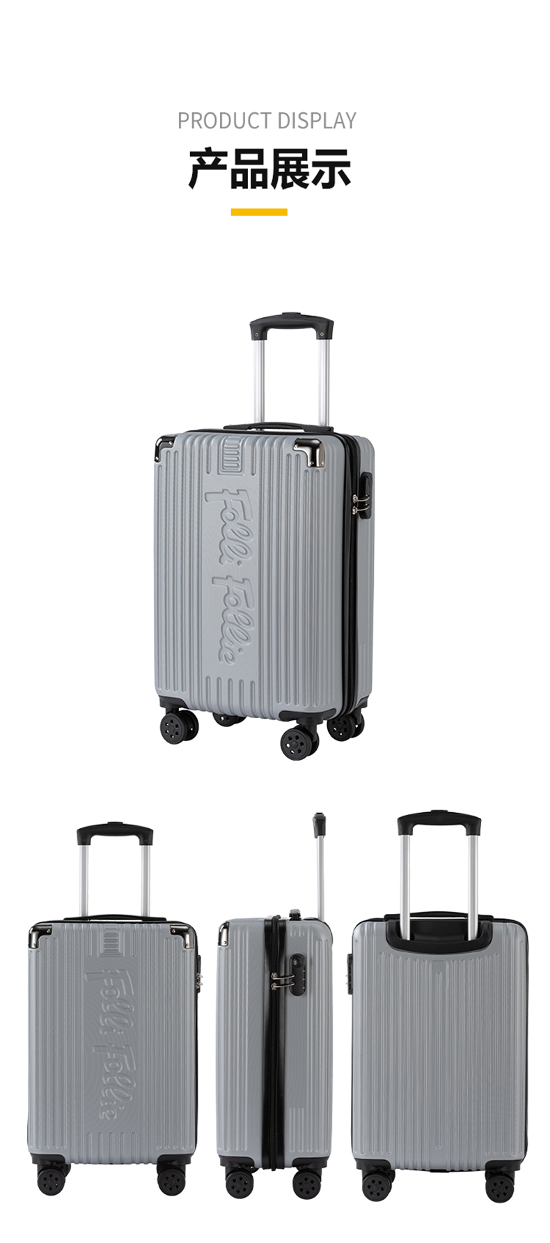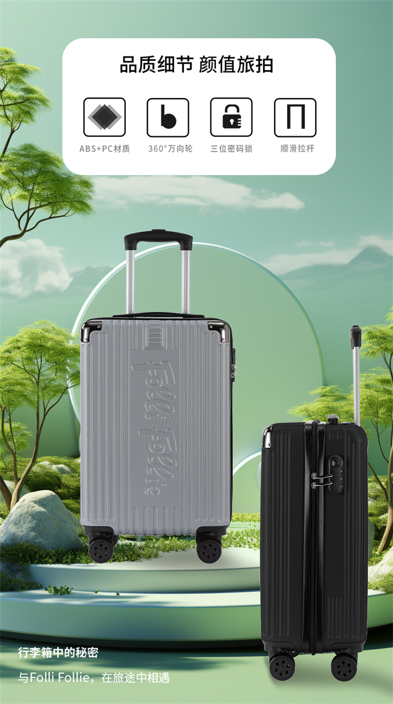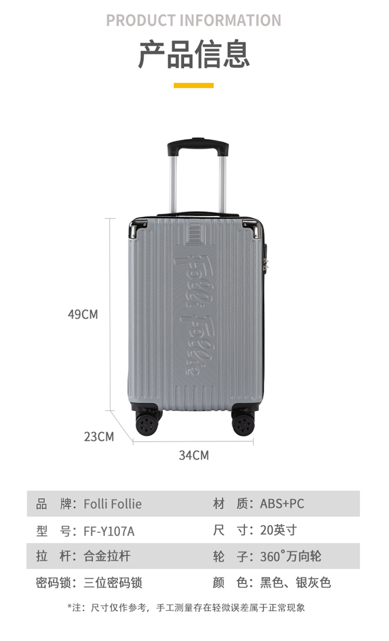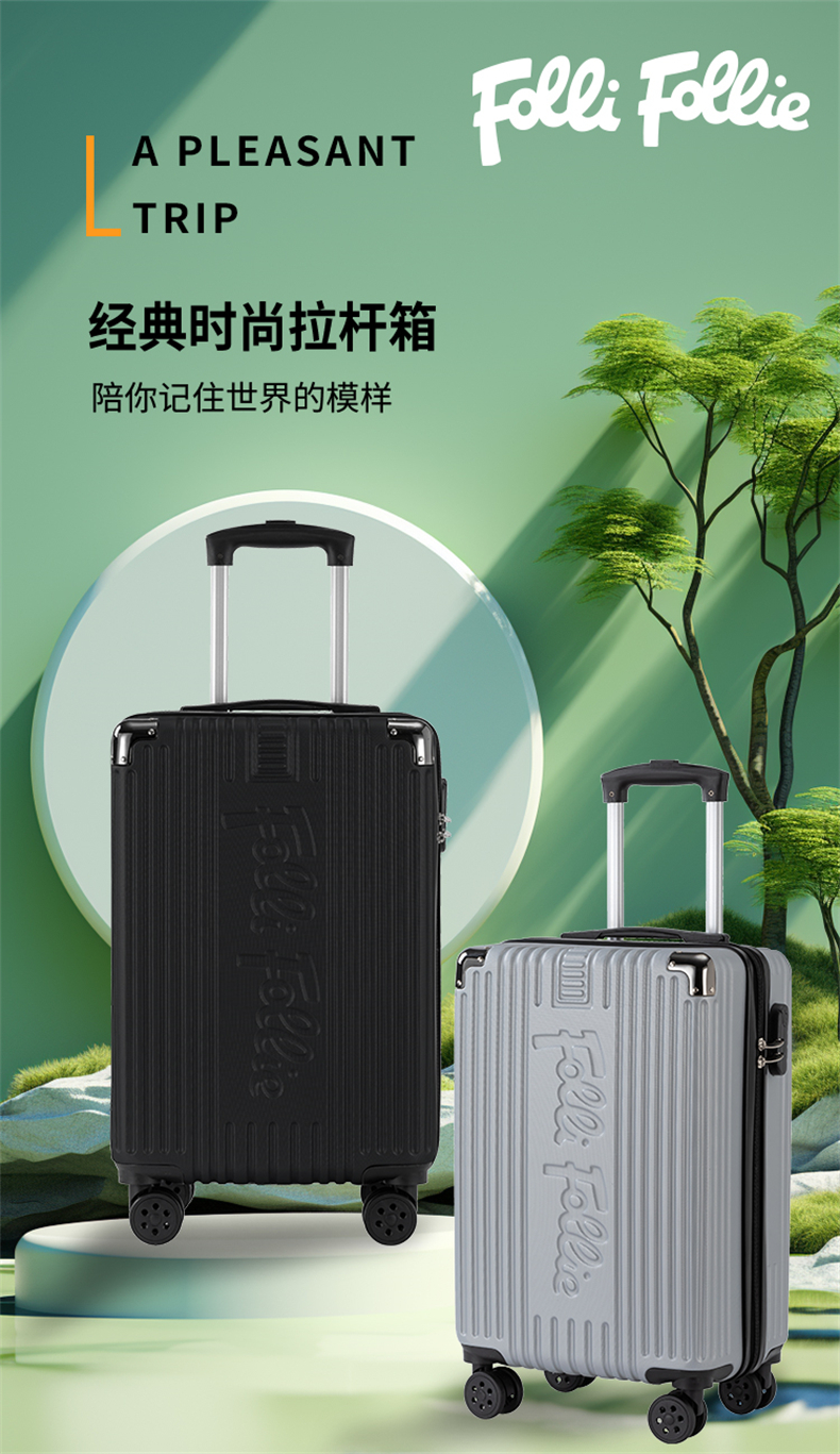 FolliFollie时尚FF竖条纹包角拉杆箱20英寸银灰色FF-Y107A