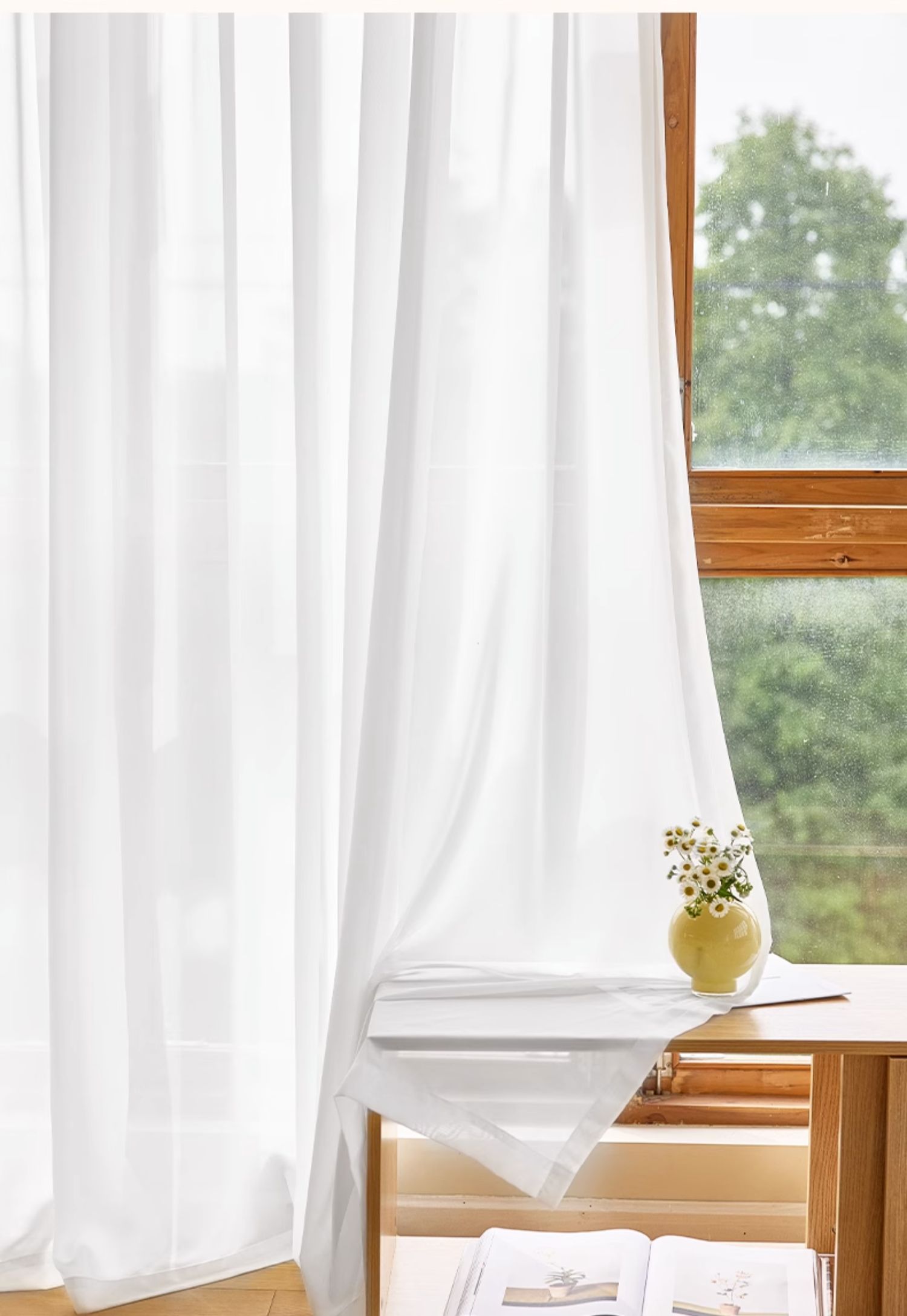 【艺禾纱】金蝉透光不透人简约绒感细小条纹纱帘