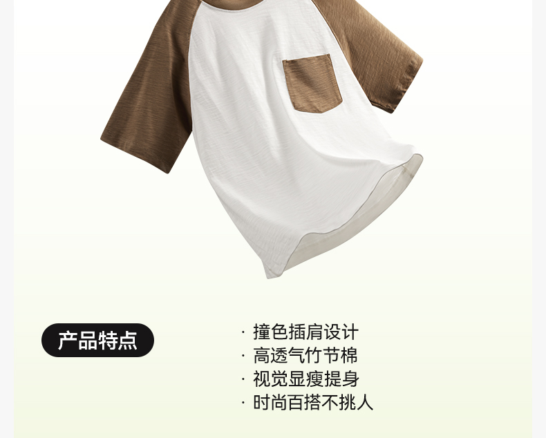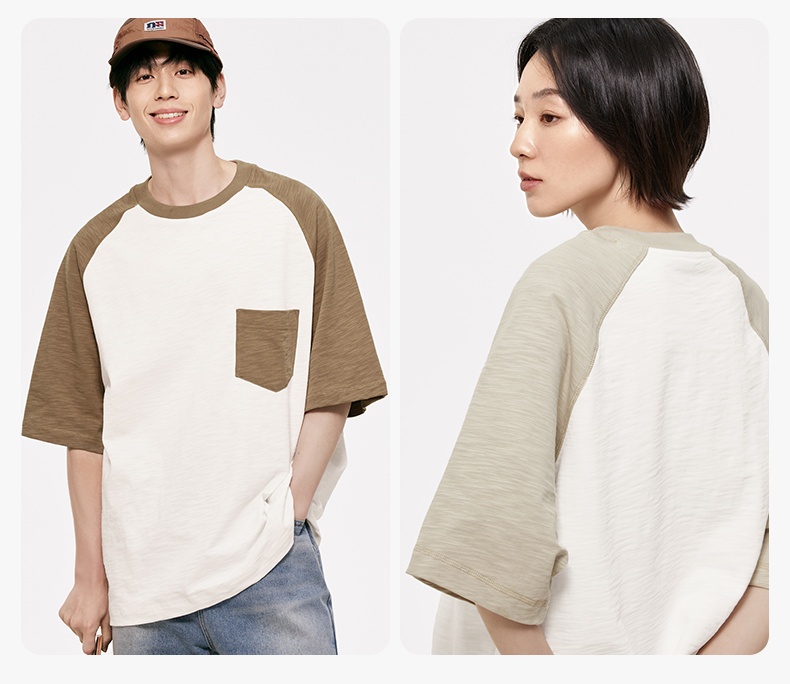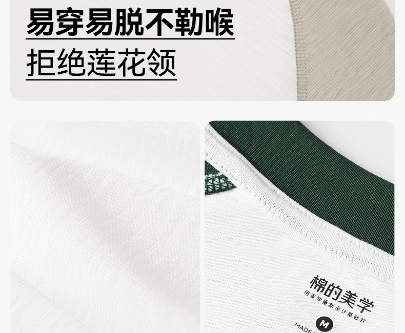 「棉的美学」320G重磅夏季透气宽松休闲简约纯色竹节棉插肩半袖