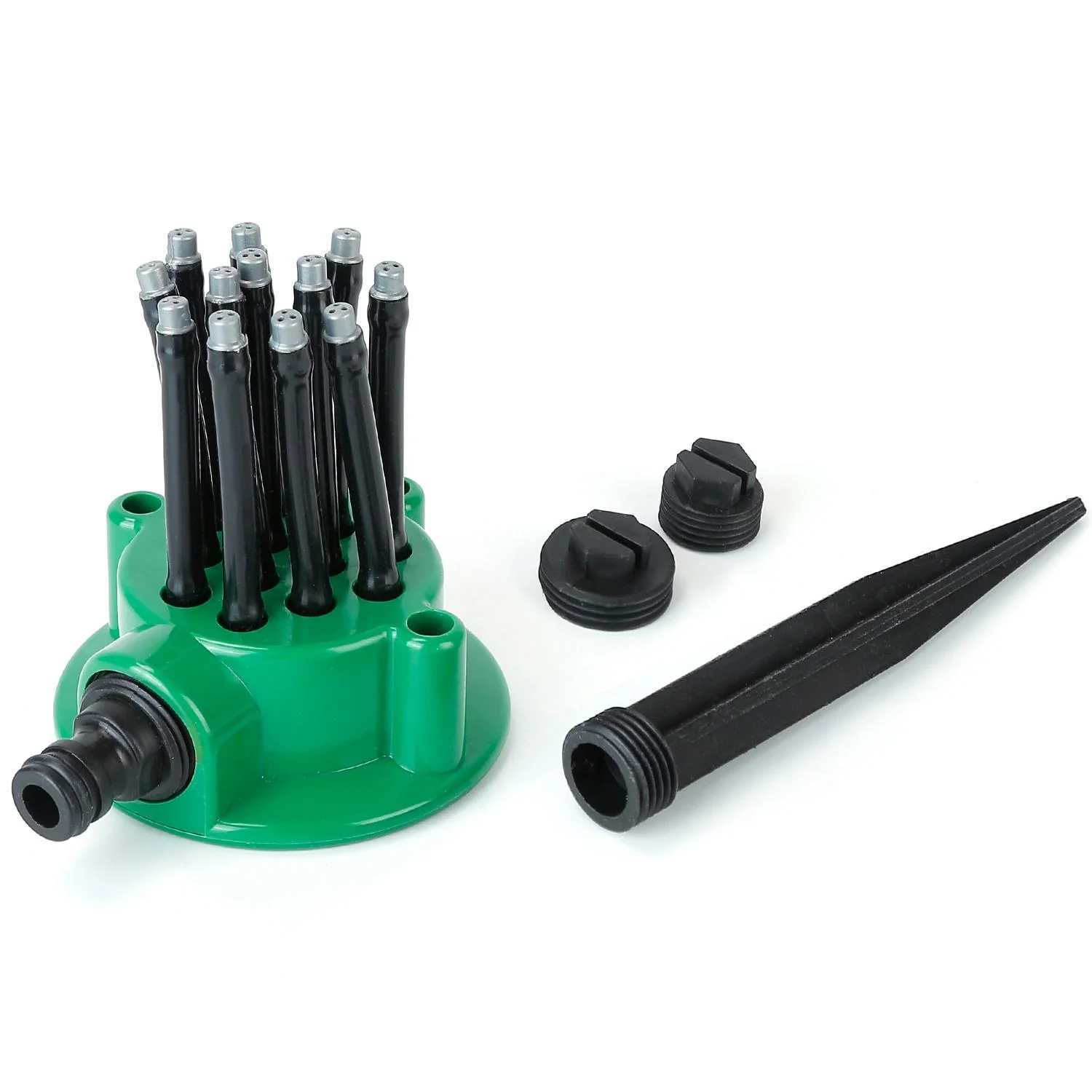 洒水喷淋器配备12根软管,可灵活旋转至任意角度,为植物提供如雨水般的浇水。与手动浇水相比,这种喷头节约更多水,也更方便。对于拥有非常大院子和植物种植的人来说,是完美的灌溉工具。