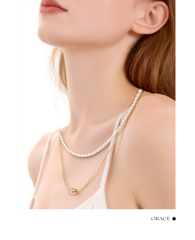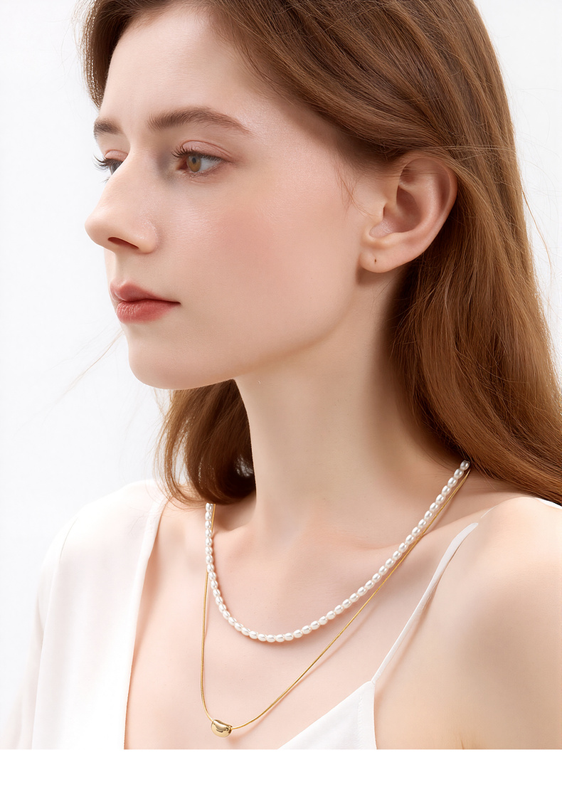 三彩2026新款金属相思豆合成珍珠双层叠戴项链极简轻奢个性约会