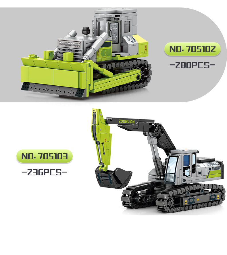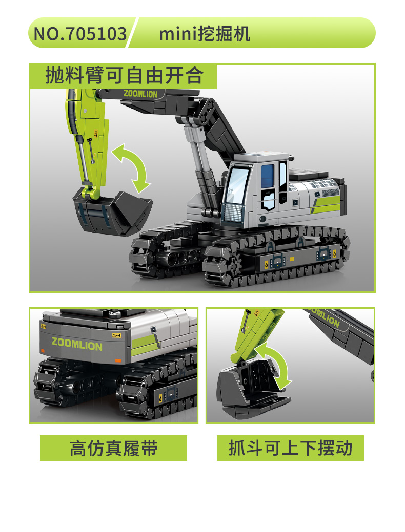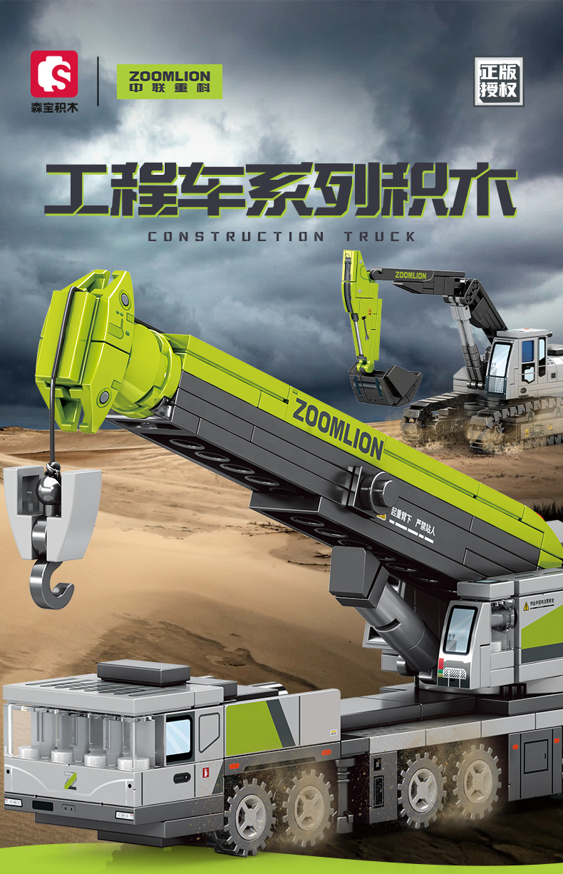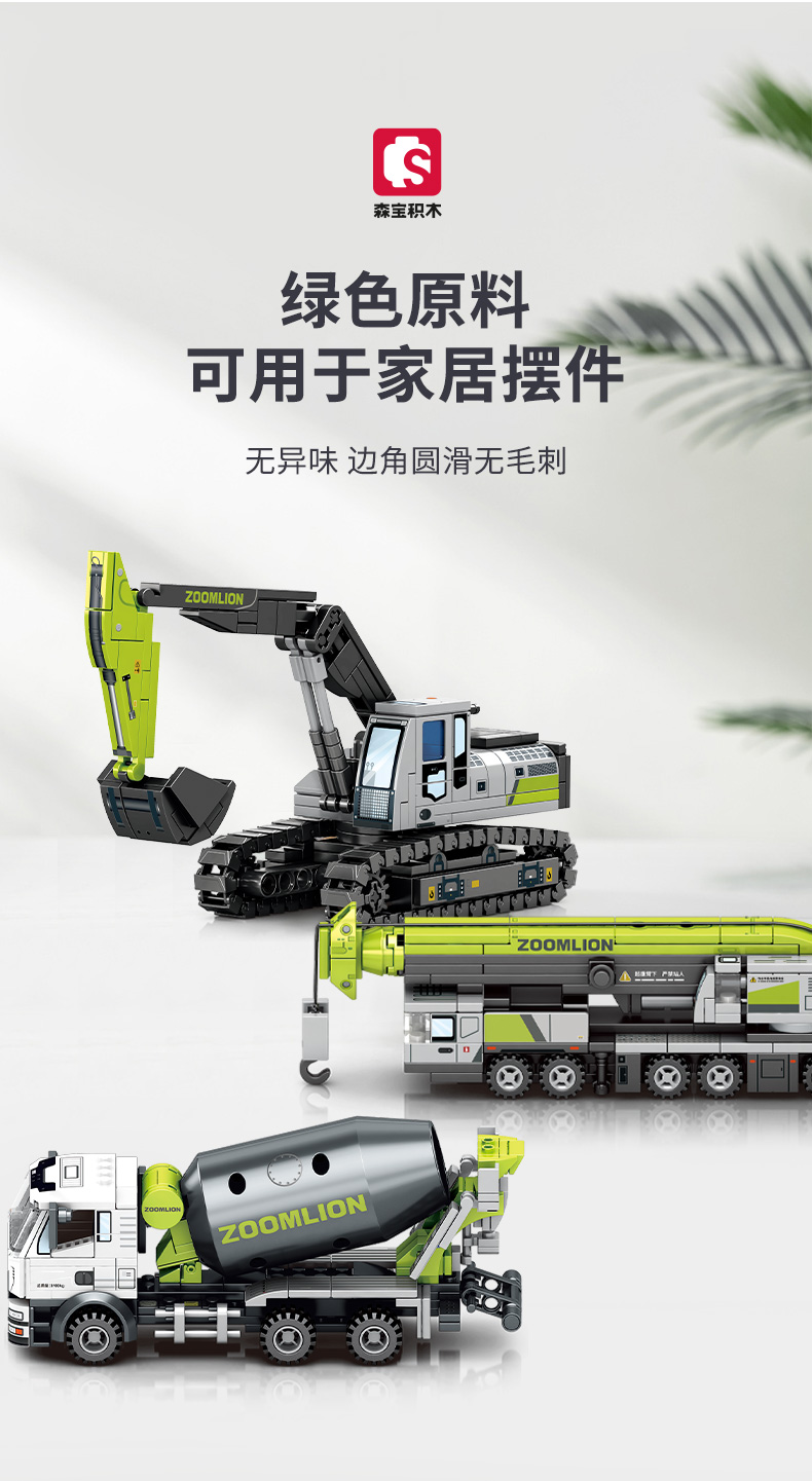 森宝积木挖掘机中联重科男孩儿童生日礼物积木拼装益智玩具工程车