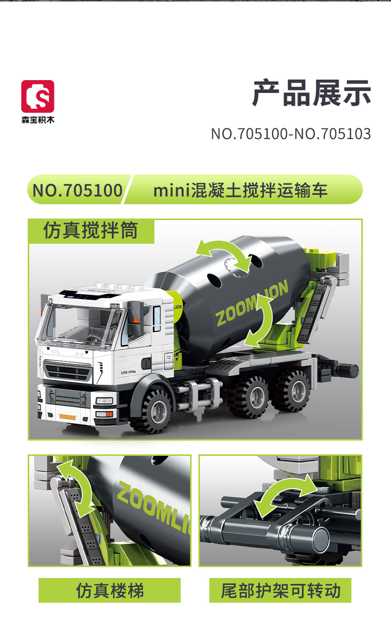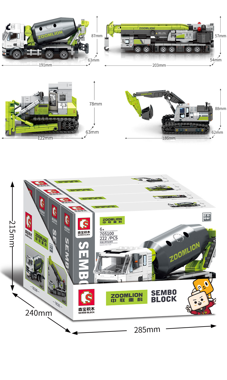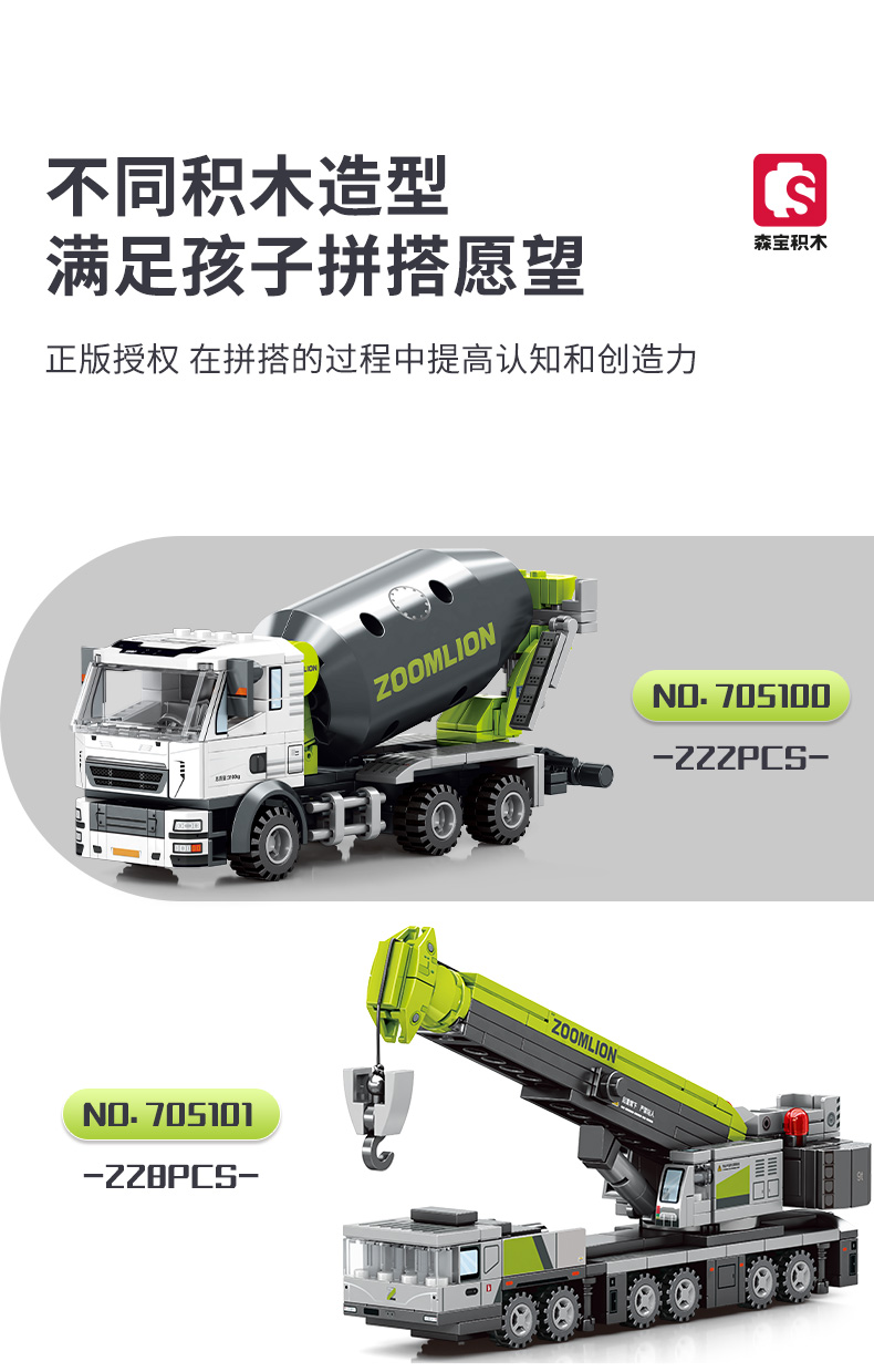 森宝积木挖掘机中联重科男孩儿童生日礼物积木拼装益智玩具工程车